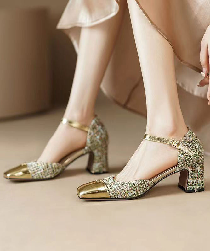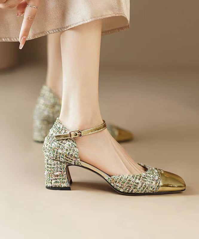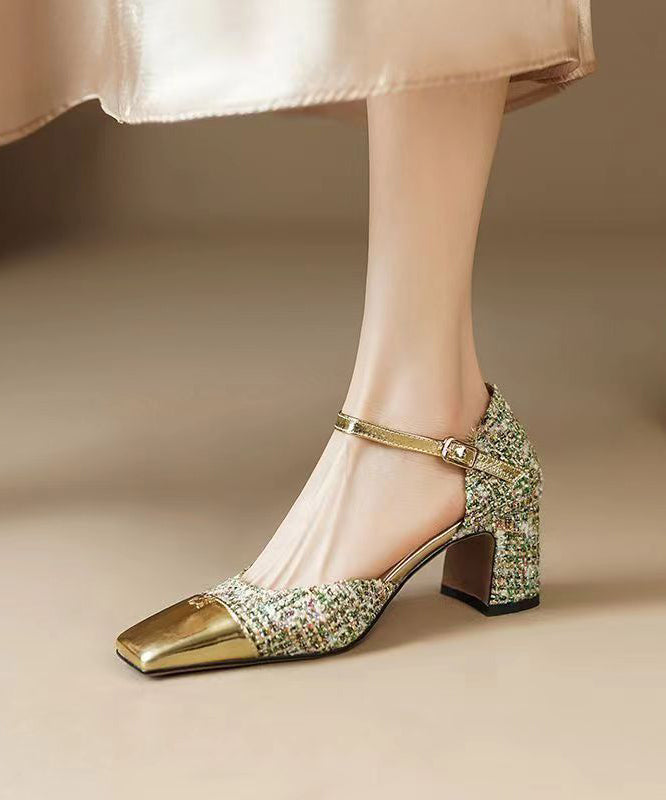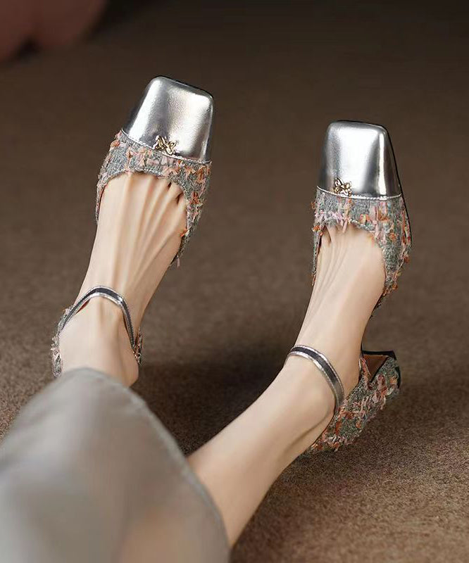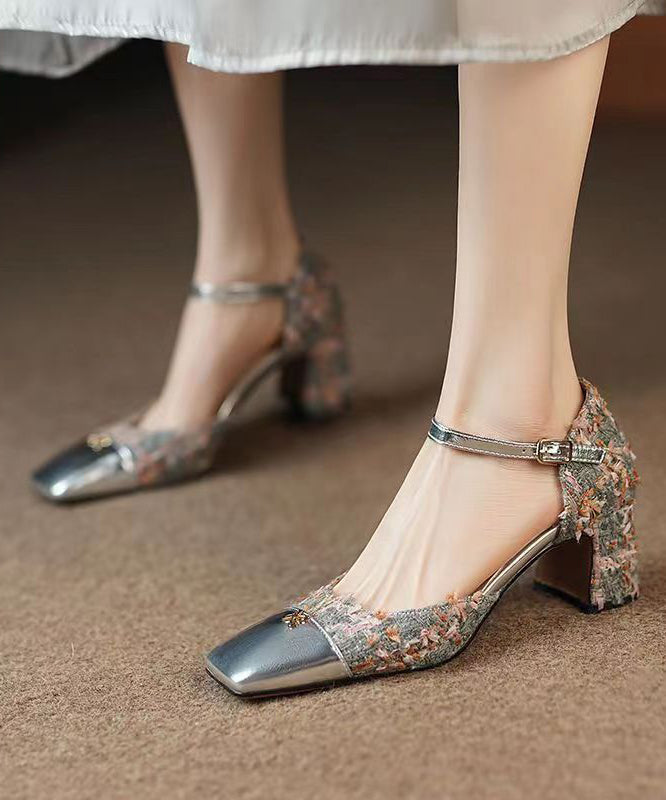French Silver Chunky Heel Buckle Strap Square Head Loafers