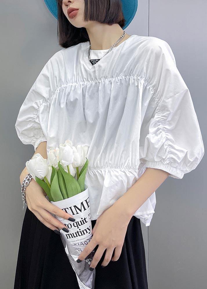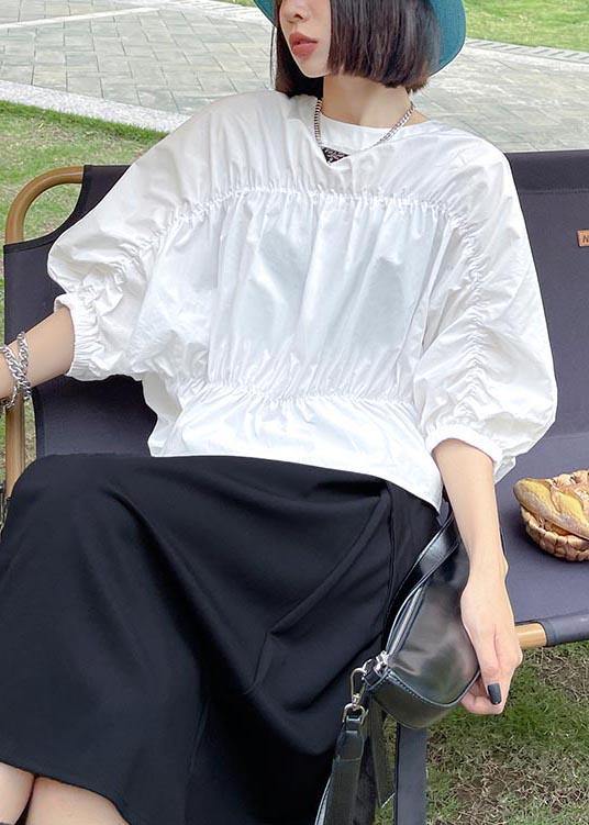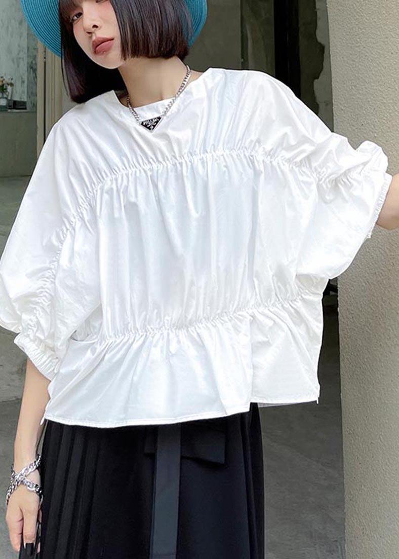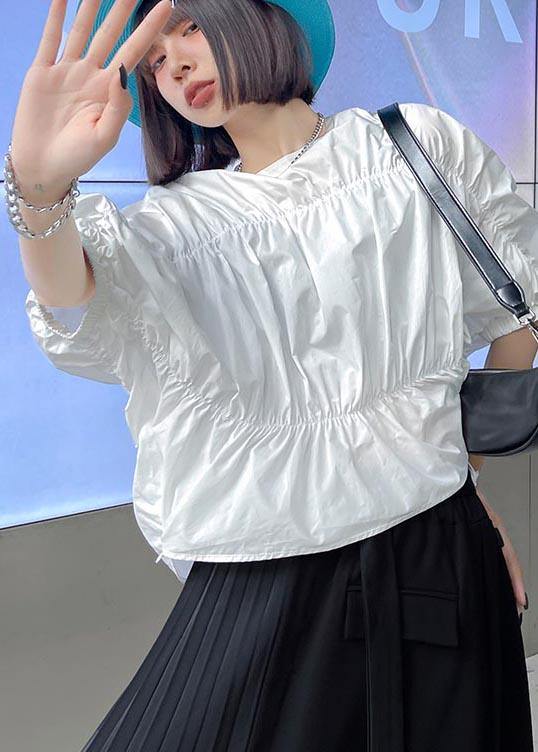 French White Cinched Batwing Sleeve Shirts Summer