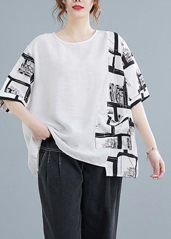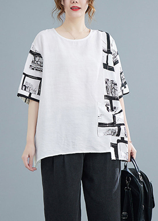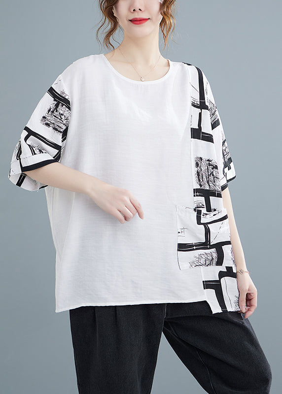French White O-Neck Cotton Beach Tanks Short Sleeve