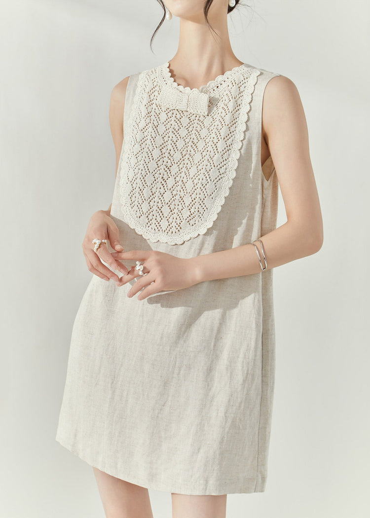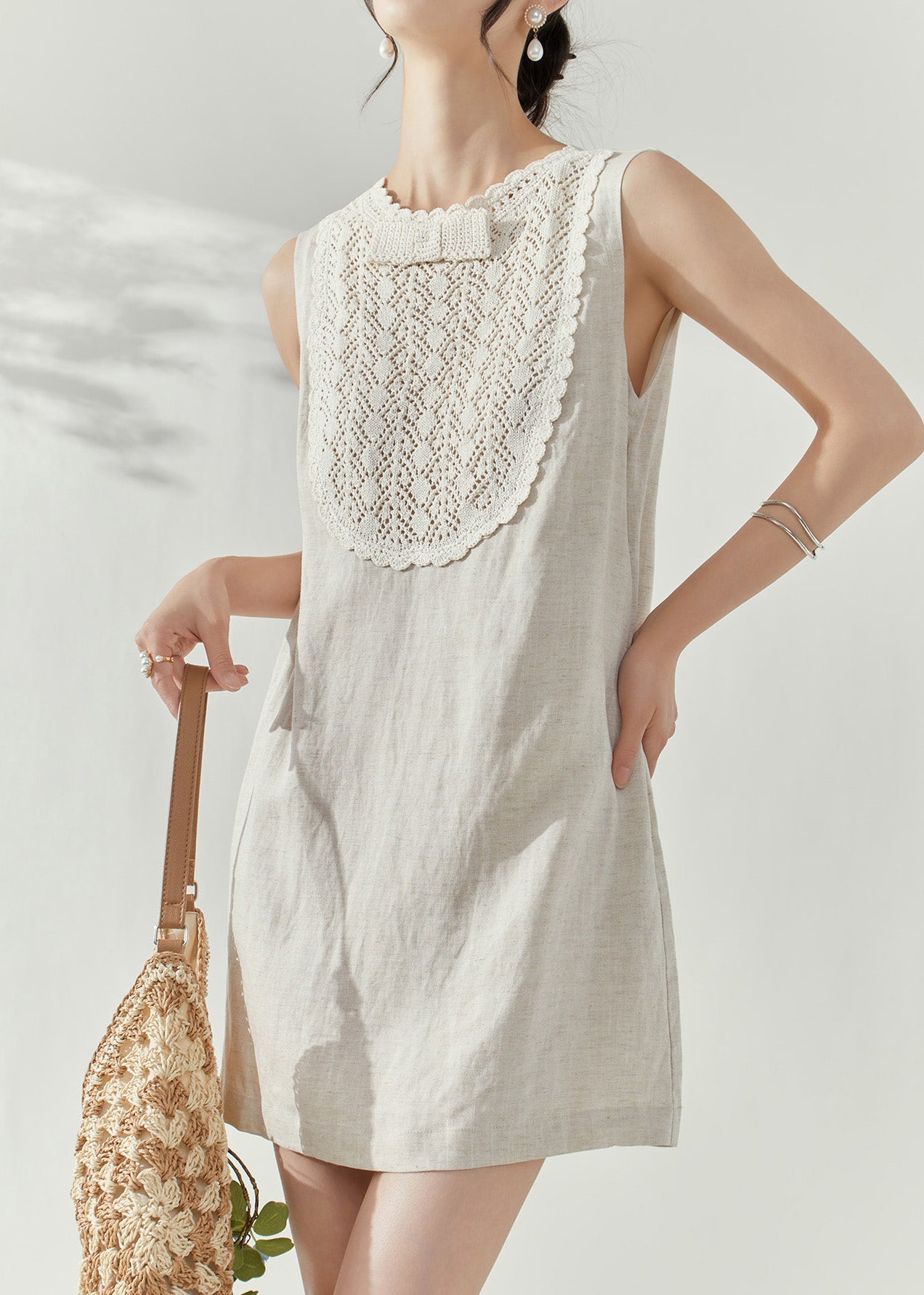 French White O-Neck Hollow Out Party Mid Dress Summer