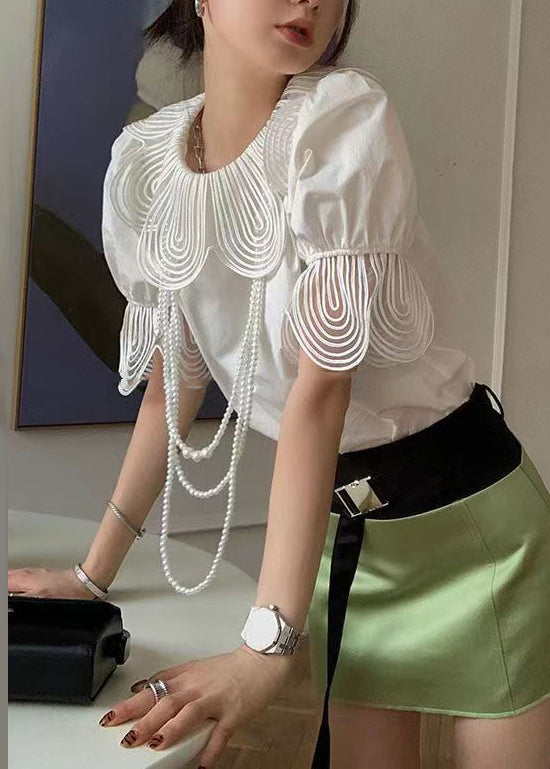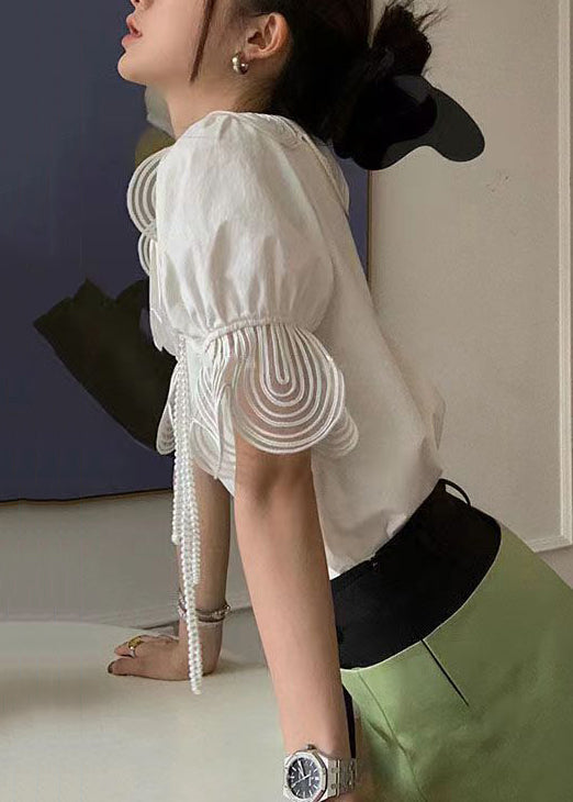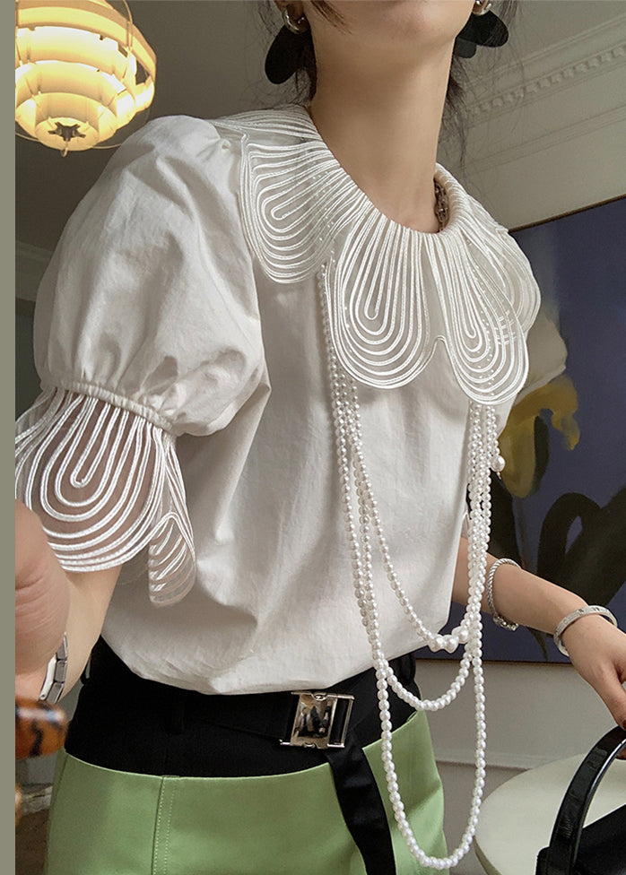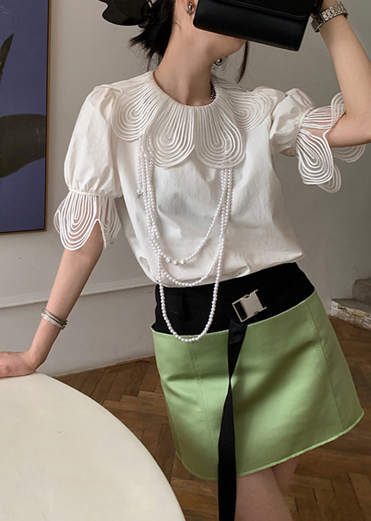 French White O Neck Patchwork Cotton T Shirt Top Summer