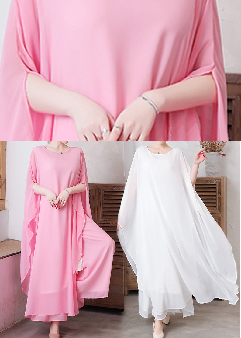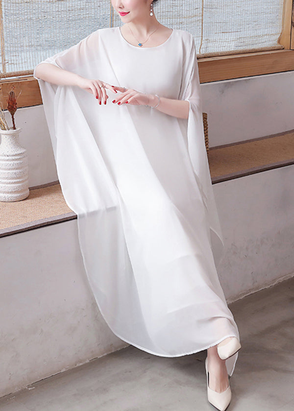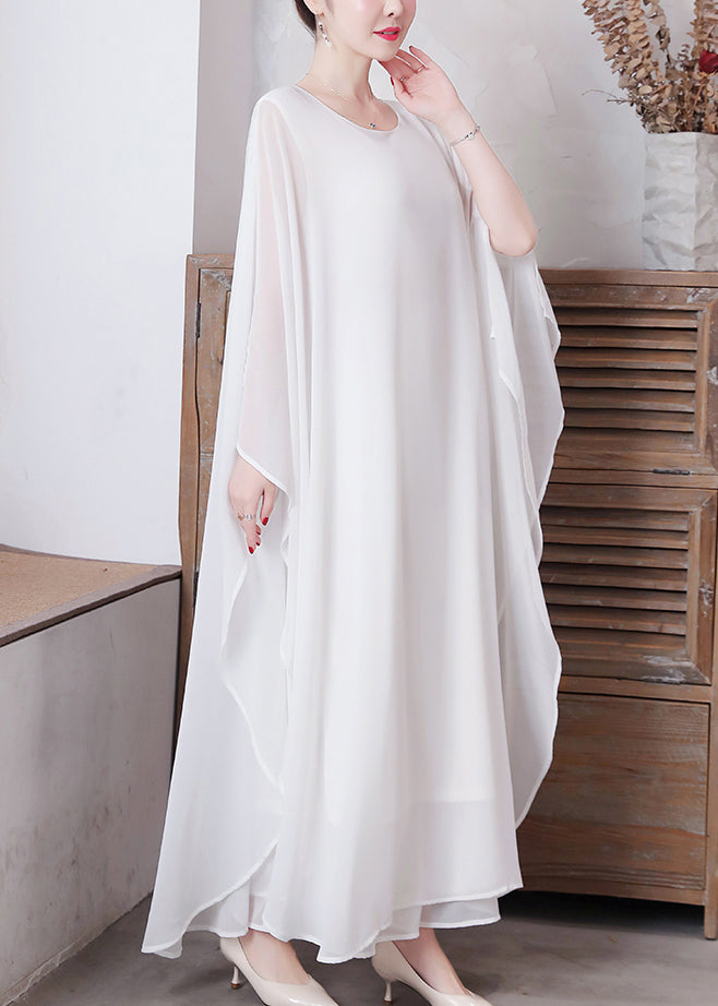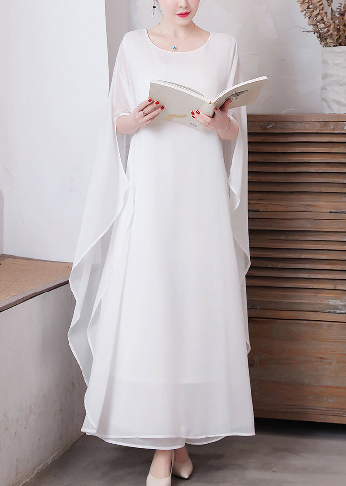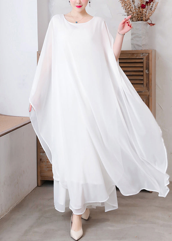 French White Oversized Chiffon Long Dress Two Pieces Set Cloak Sleeves