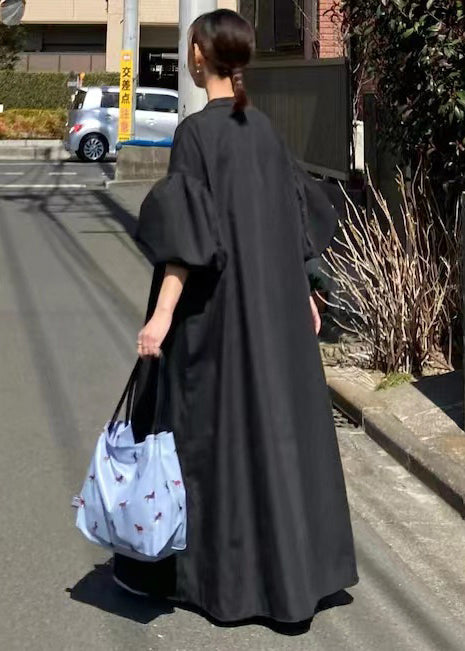 French White Oversized Cotton Shirt Dresses Lantern Sleeve