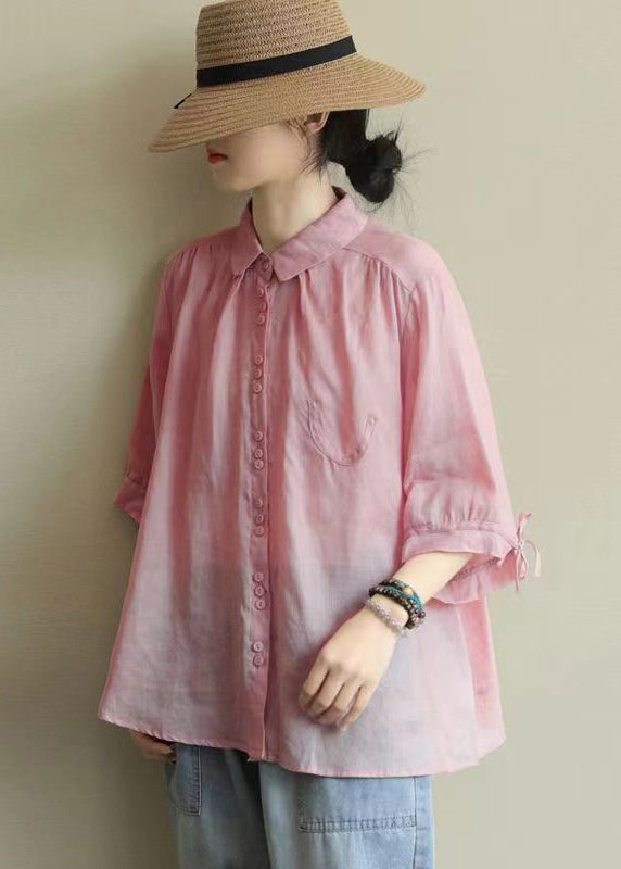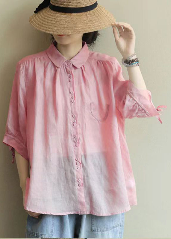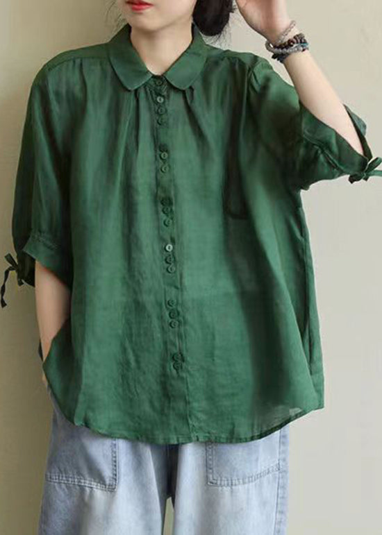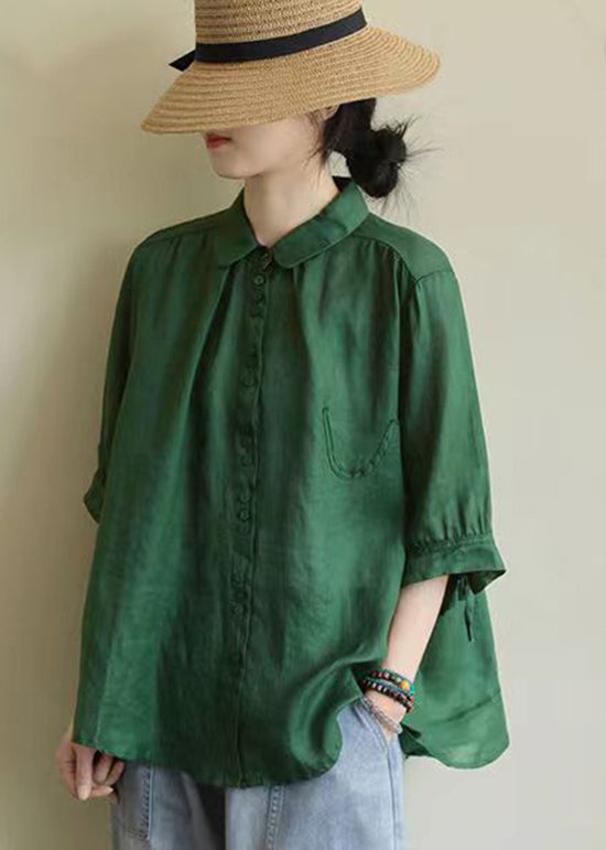Green Peter Pan Collar Patchwork Cotton Shirt Top Summer