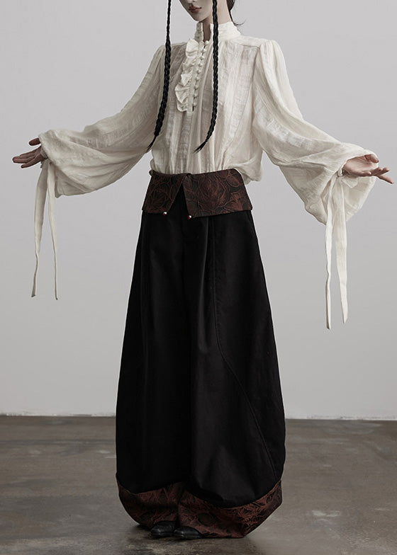 Italian Black Jacquard Patchwork Cotton Wide Leg Pants Fall