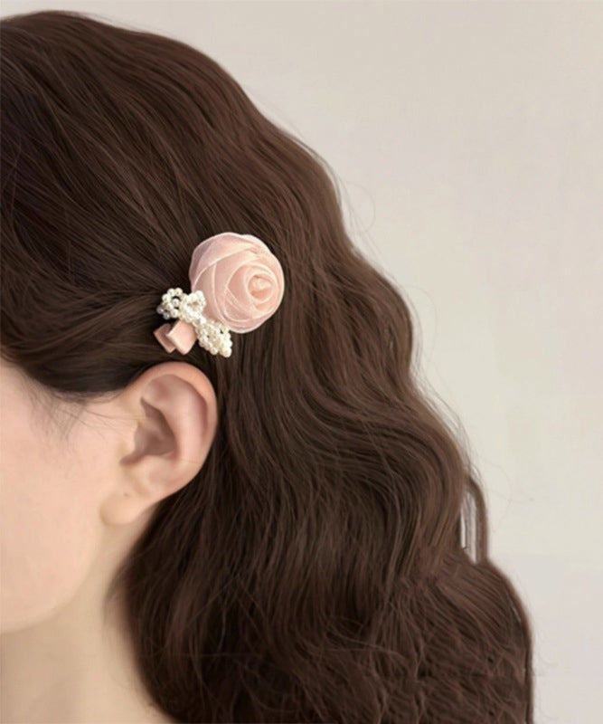 Art Pink Chiffon Pearl Rose Bow Hairpin