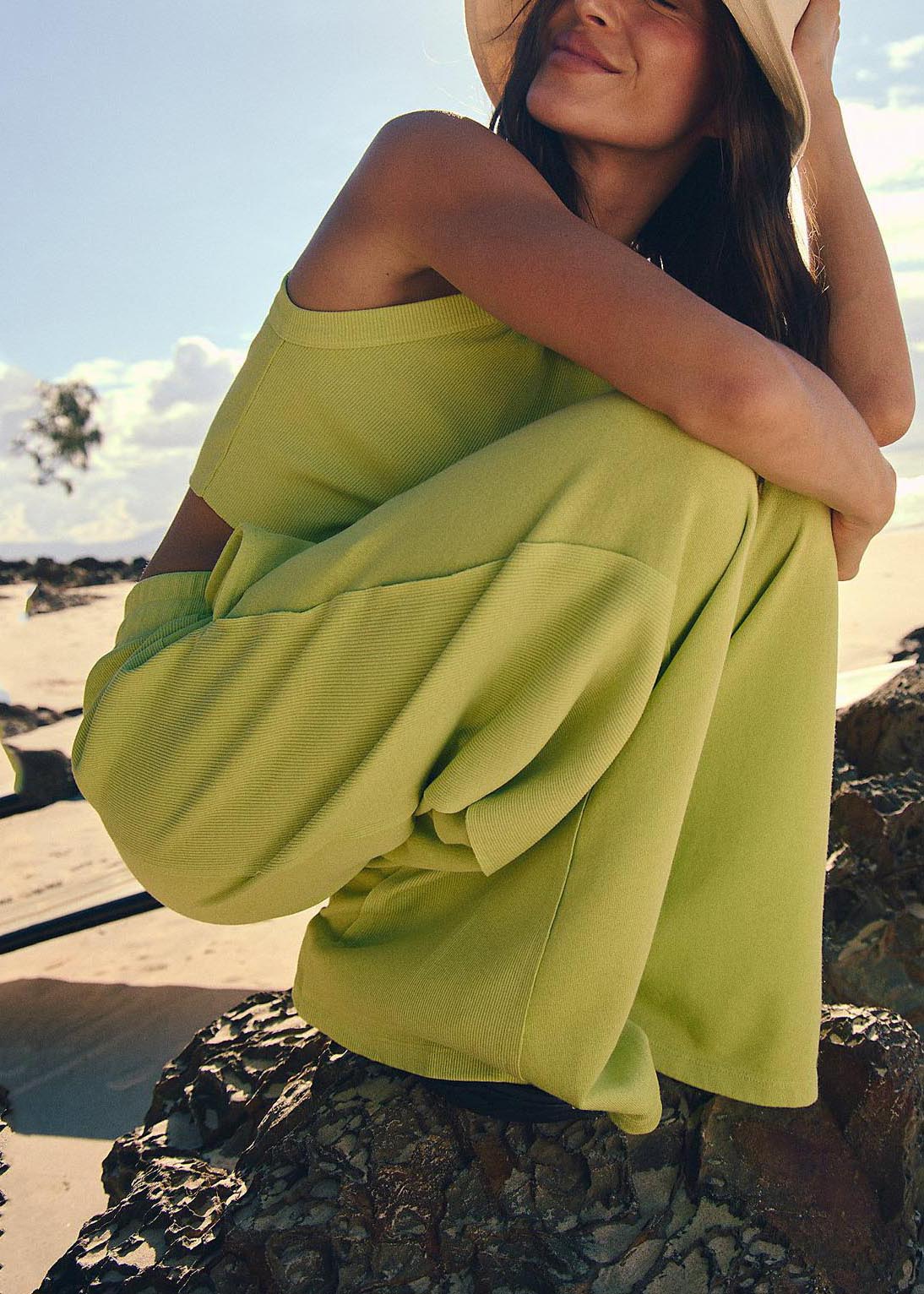 Grass Green Silm Fit Cotton Two Piece Set Women Clothing Summer