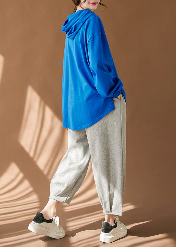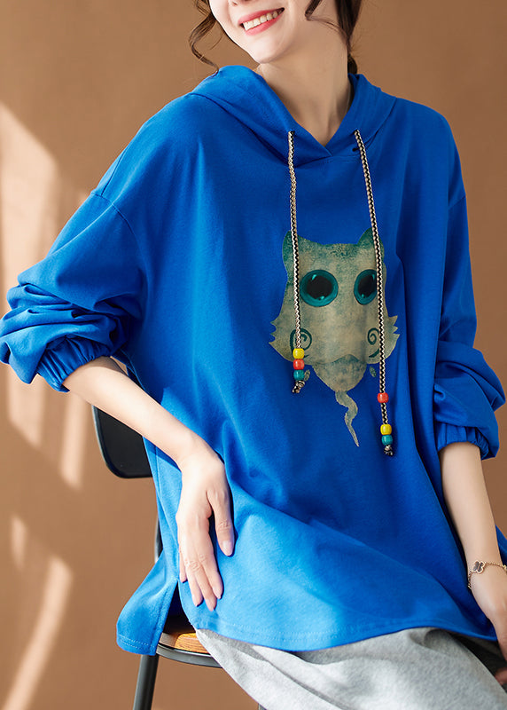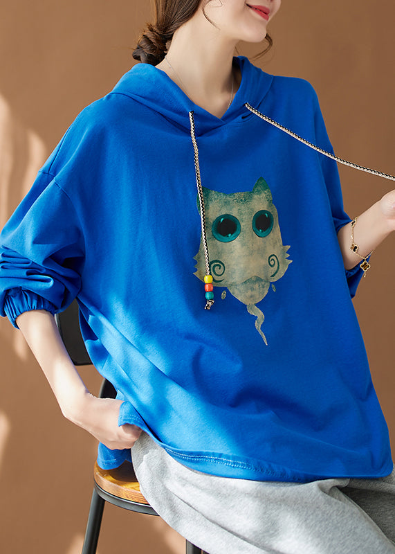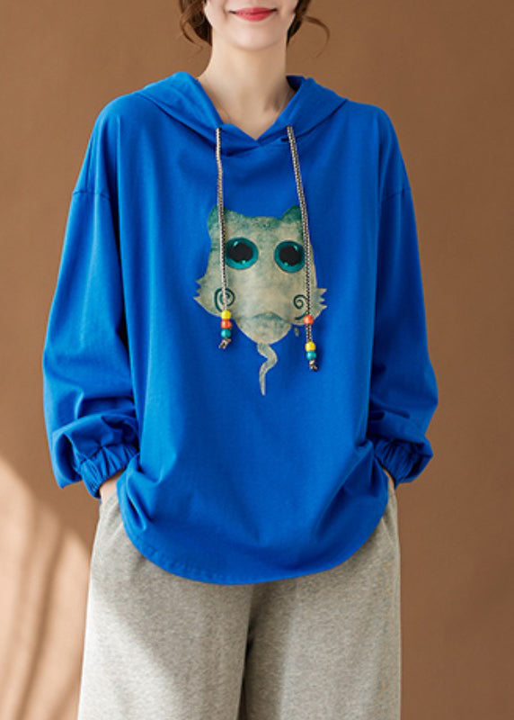 Blue Print Plus Size Cozy Cotton Loose Sweatshirt Hooded Fall