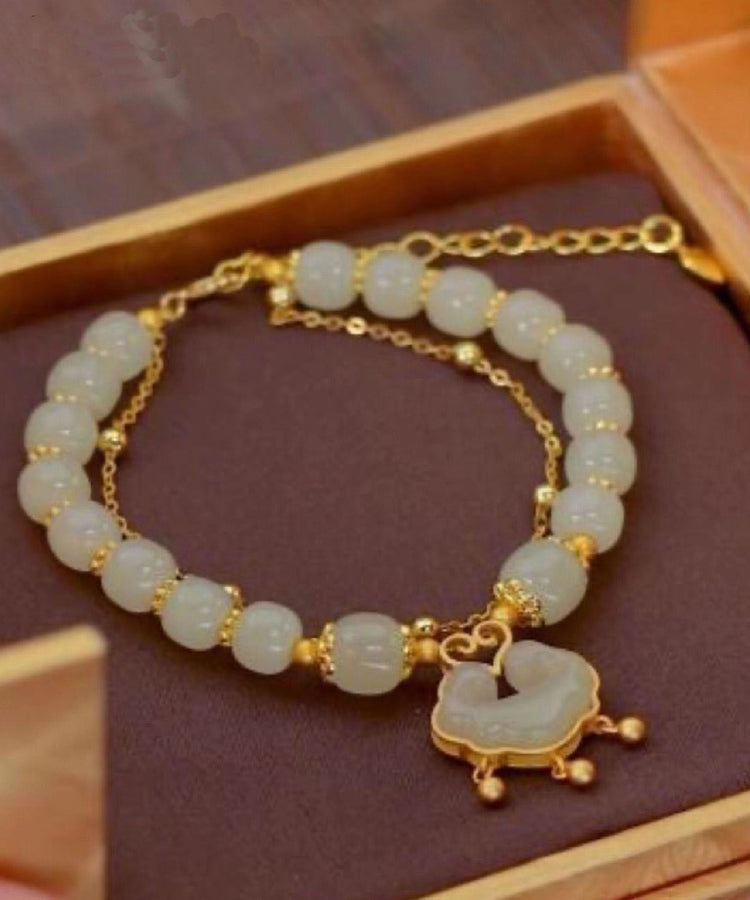 Classy Little Green Sterling Silver Overgild Jade Safety Lock Tassel Charm Bracelet