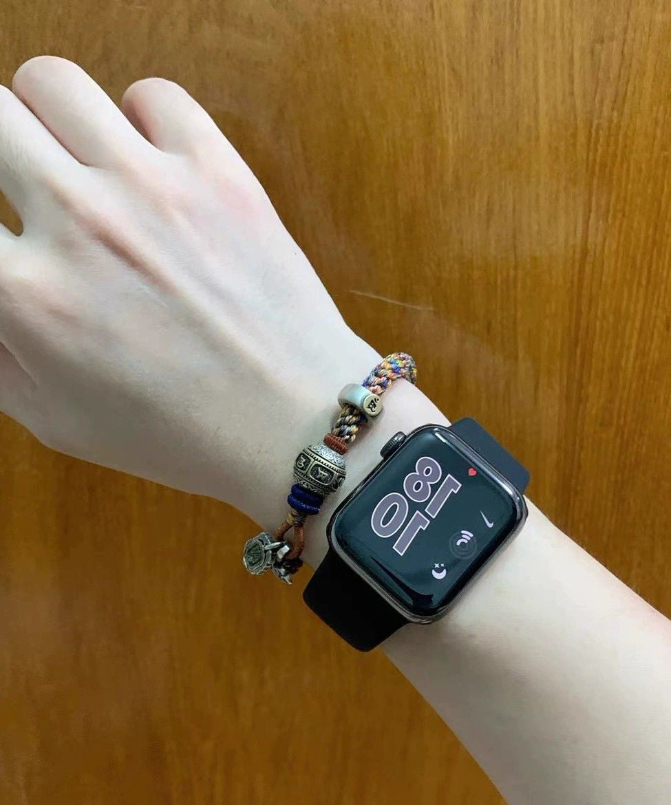 Handmade Rainbow Sterling Silver Weave Lucky Bead Charm Bracelet