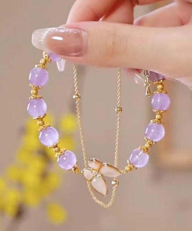 Unique Purple Crystal Zircon Butterfly Double Layered Chain Bracelet
