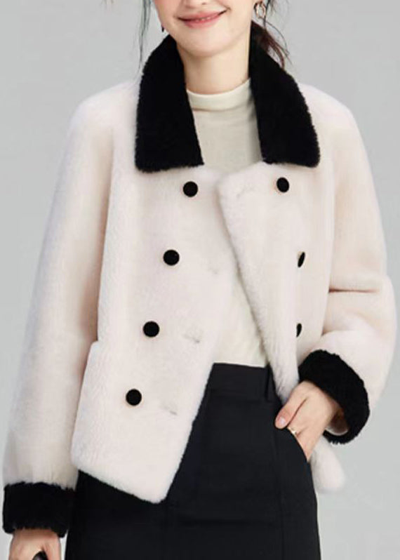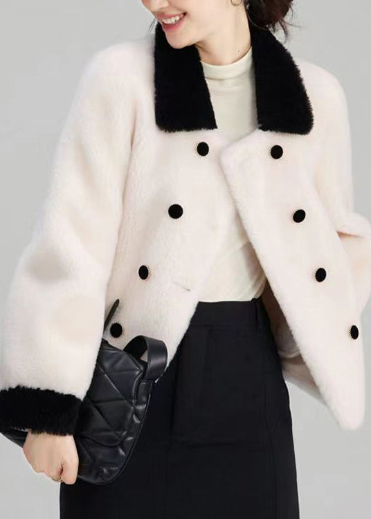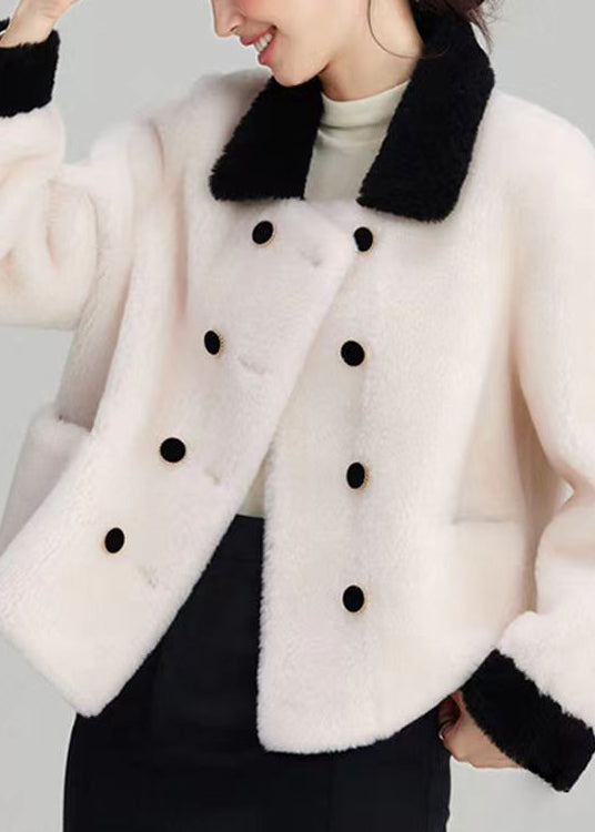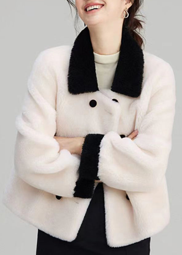 Elegant Beige Peter Pan Collar Pockets Patchwork Wool Outwear Winter