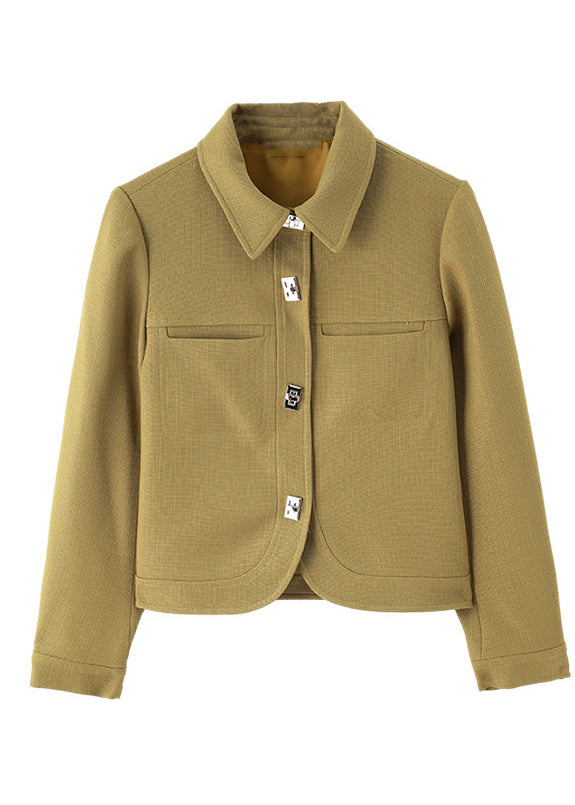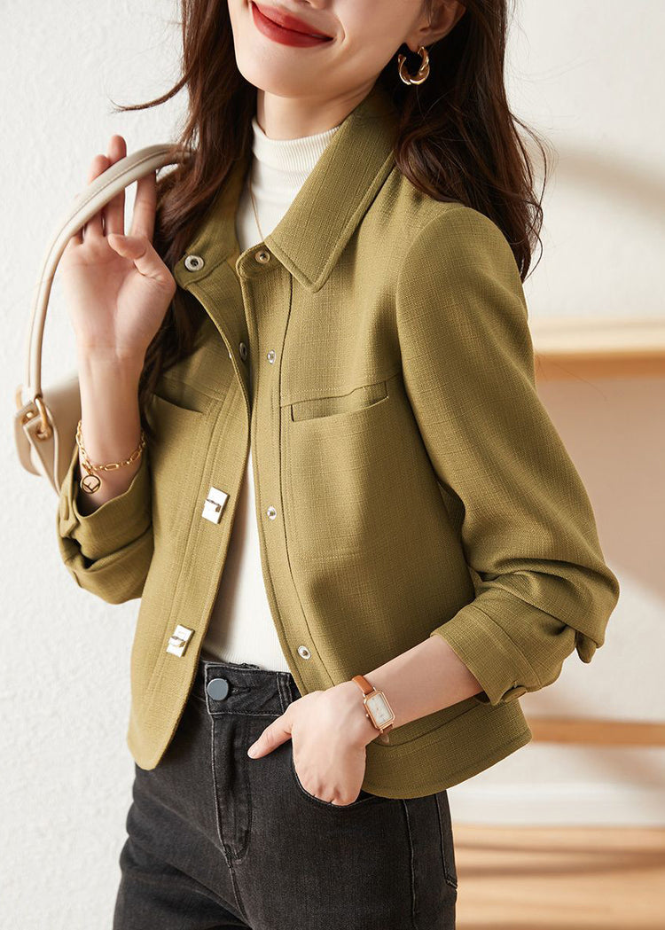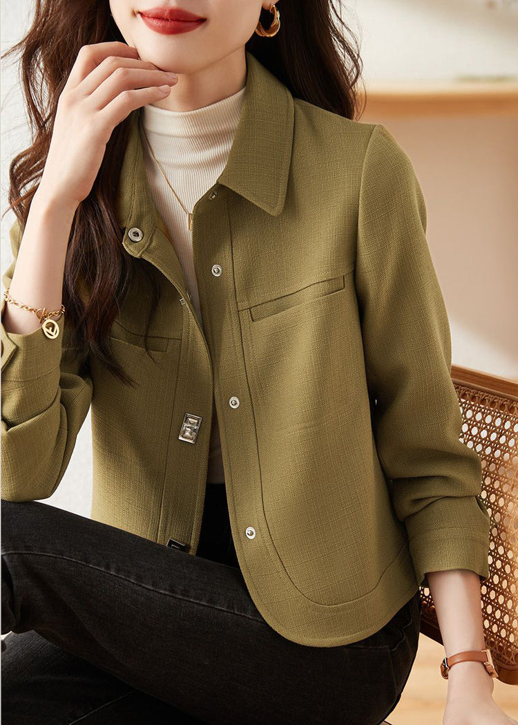 Elegant Green Peter Pan Collar Slim Fit Cotton Coats Fall