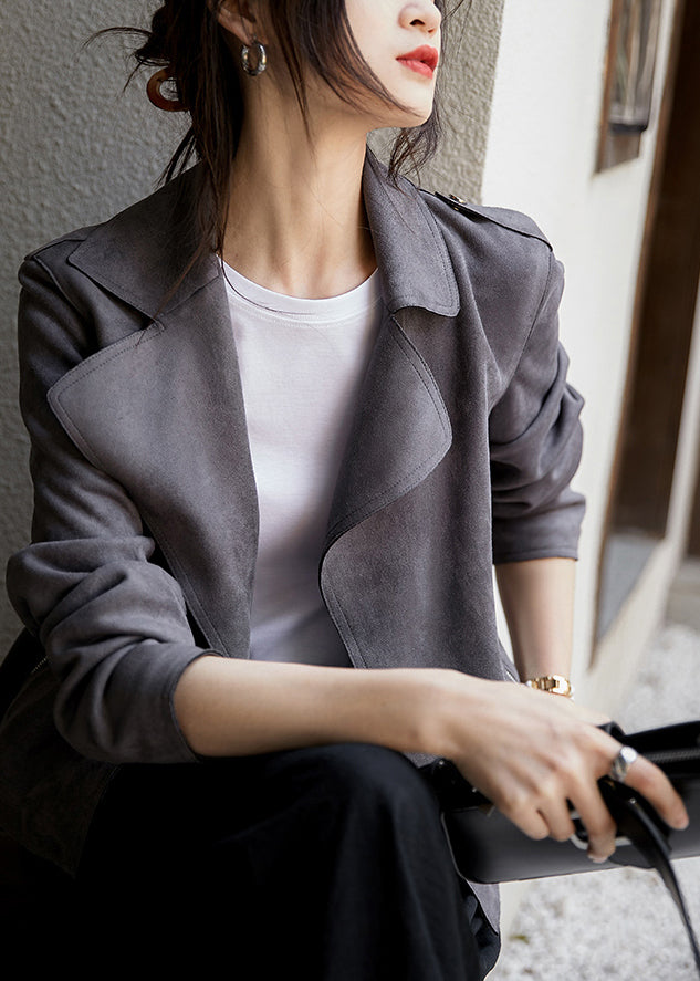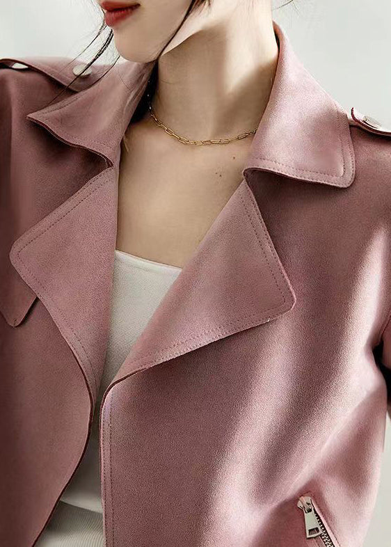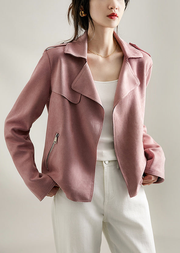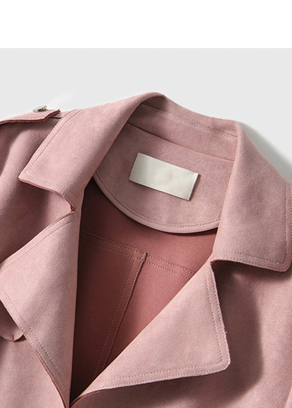 French Pink Lapel Oversized Faux Suede Jacket Fall