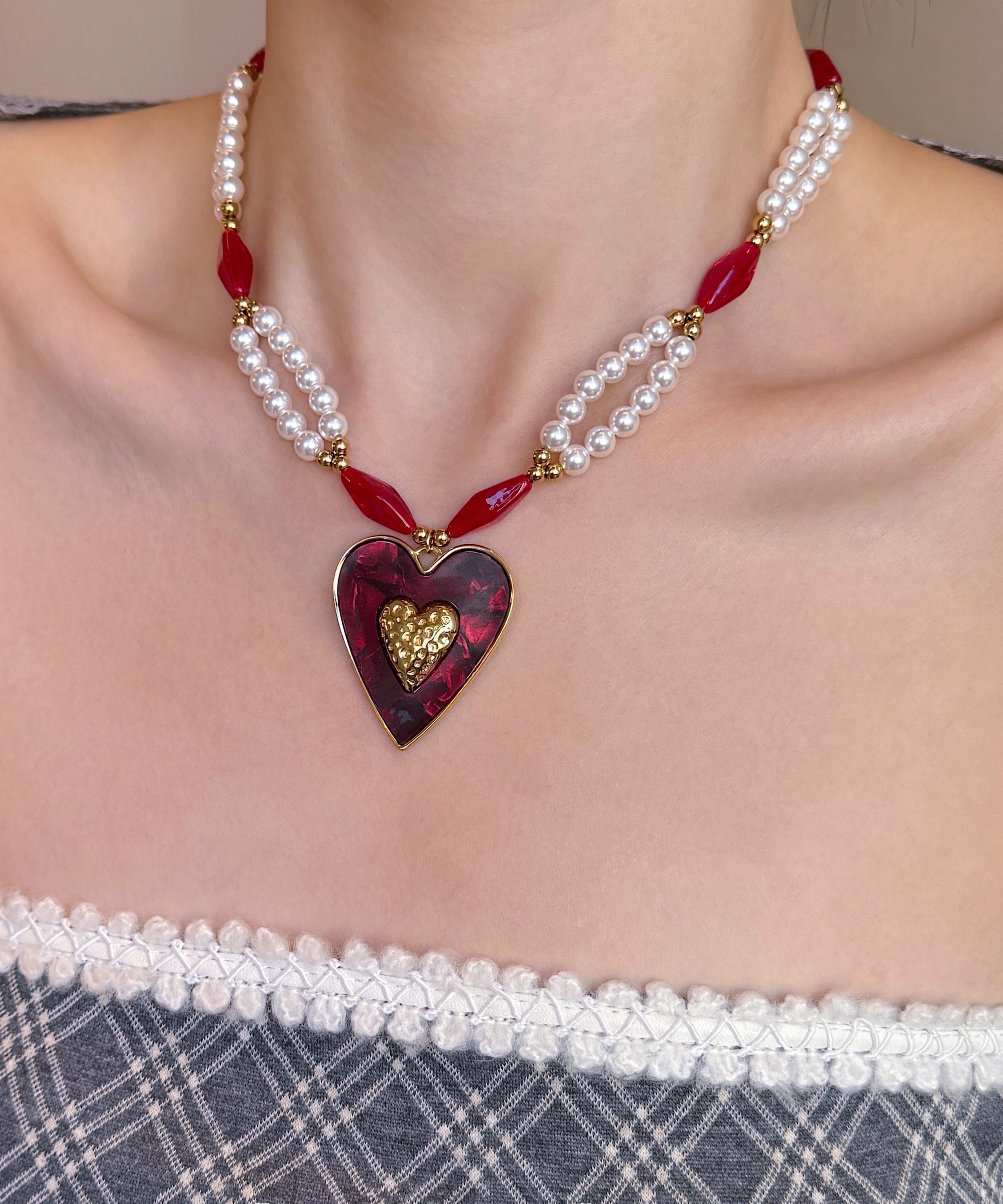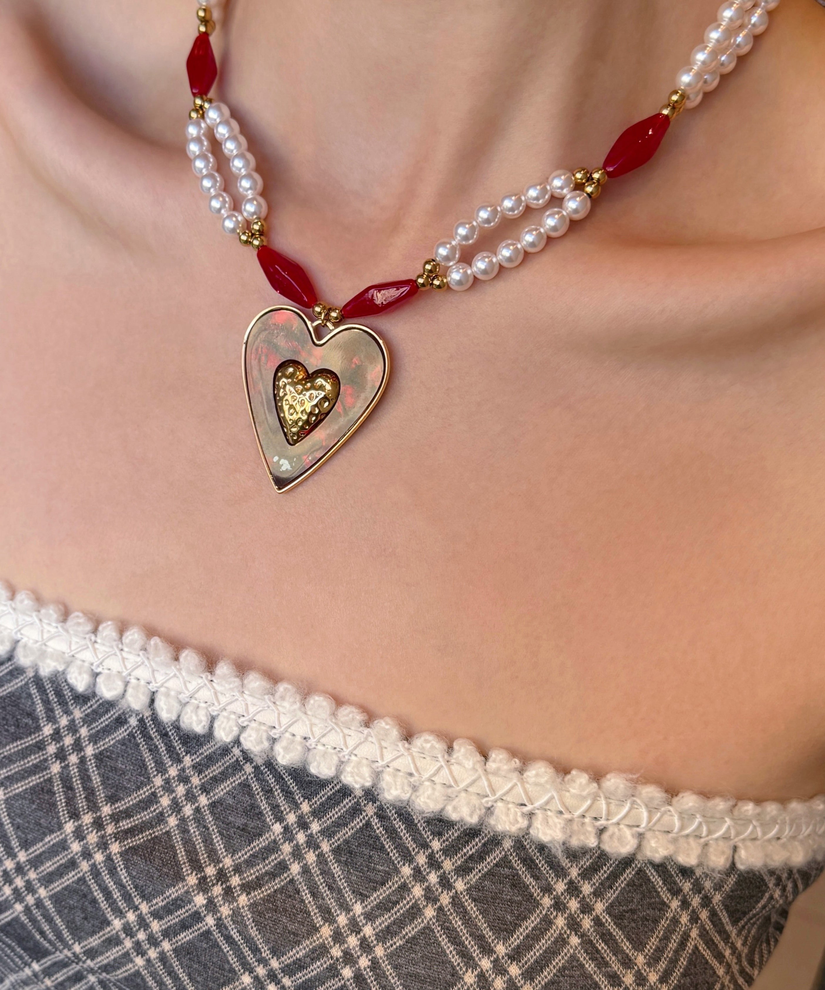 Elegant Colorblock Alloy Pearl Love Glass Bead Pendant Necklace