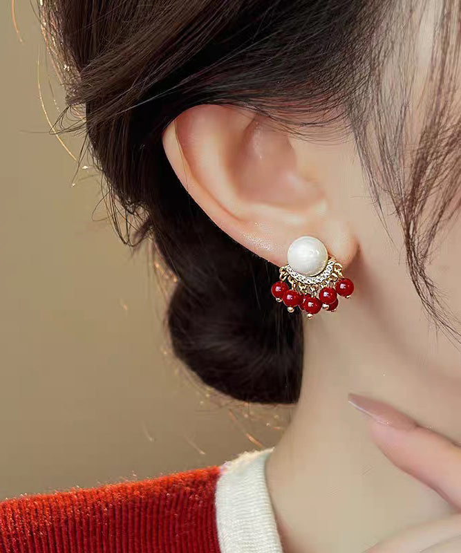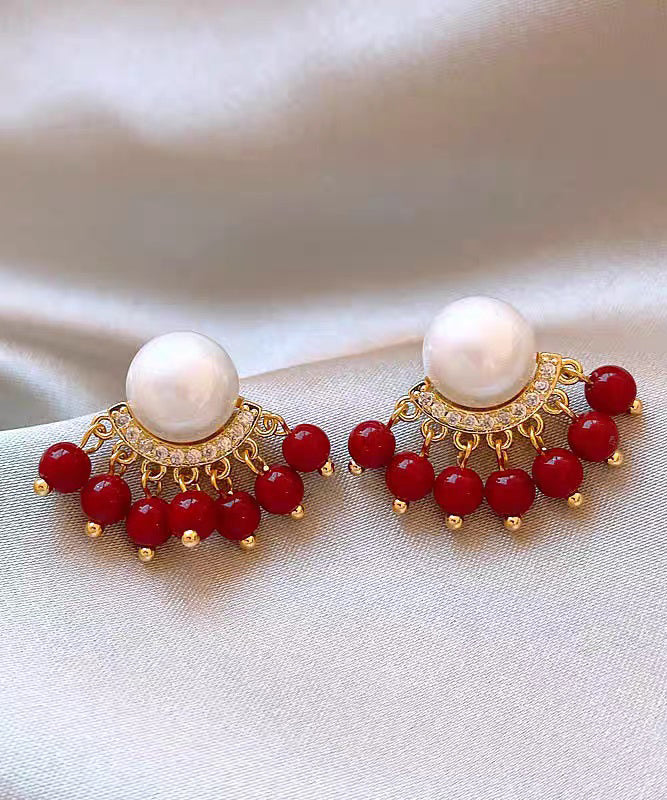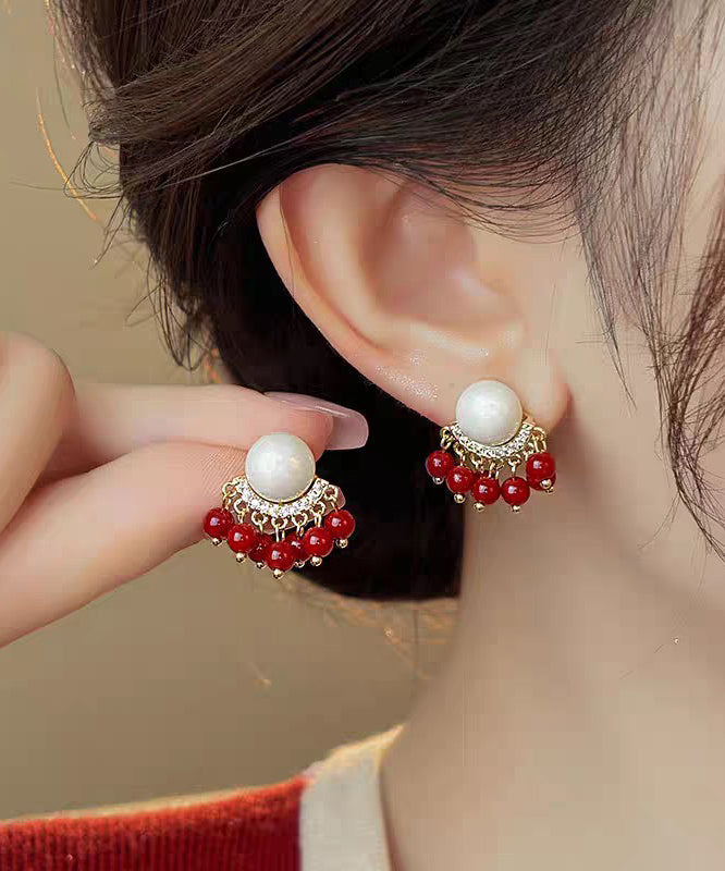 Original Design Colorblock Alloy Zircon Pearl Tassel Stud Earrings