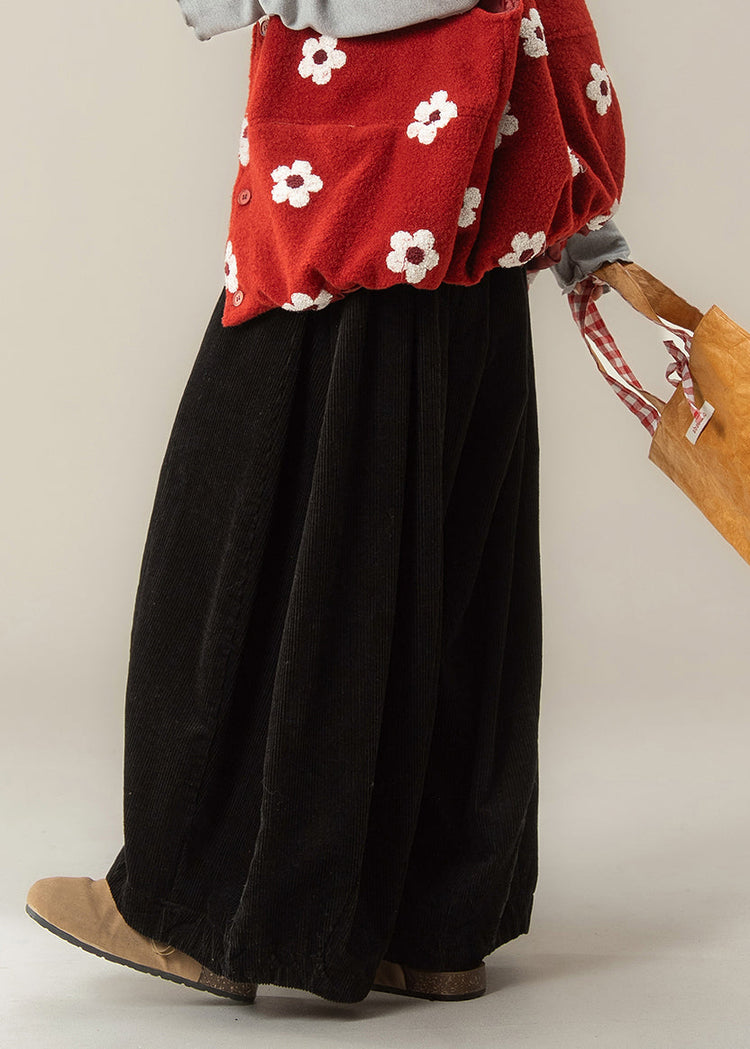 Bobo Black Elastic Waist Corduroy Wide Leg Pants Spring
