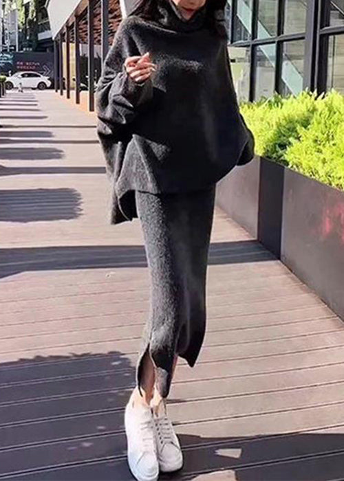 Loose Pink Turtleneck Sweaters And Skirts Knit Two Pieces Set Winter