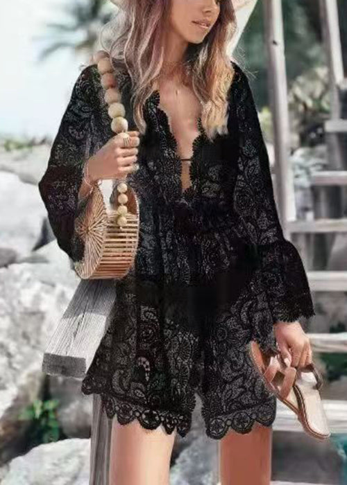 Novelty White V Neck Solid Lace Mini Dresses Summer