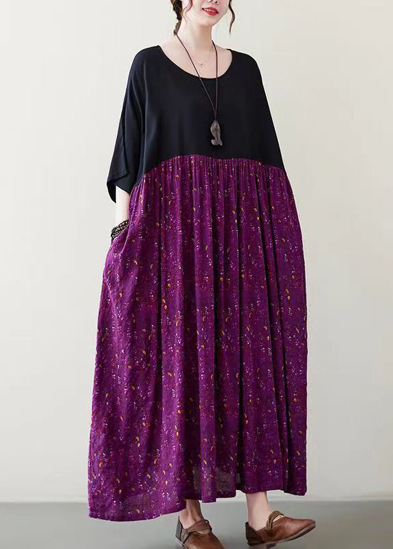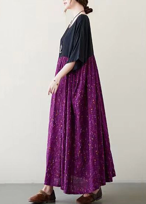 Purple Patchwork Wrinkled Maxi Dress Summer
