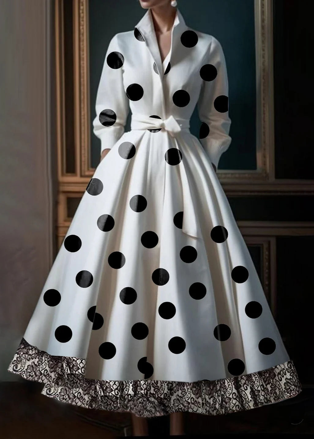 Polka Dot Lace Patchwork Belt Pocket Midi Dress