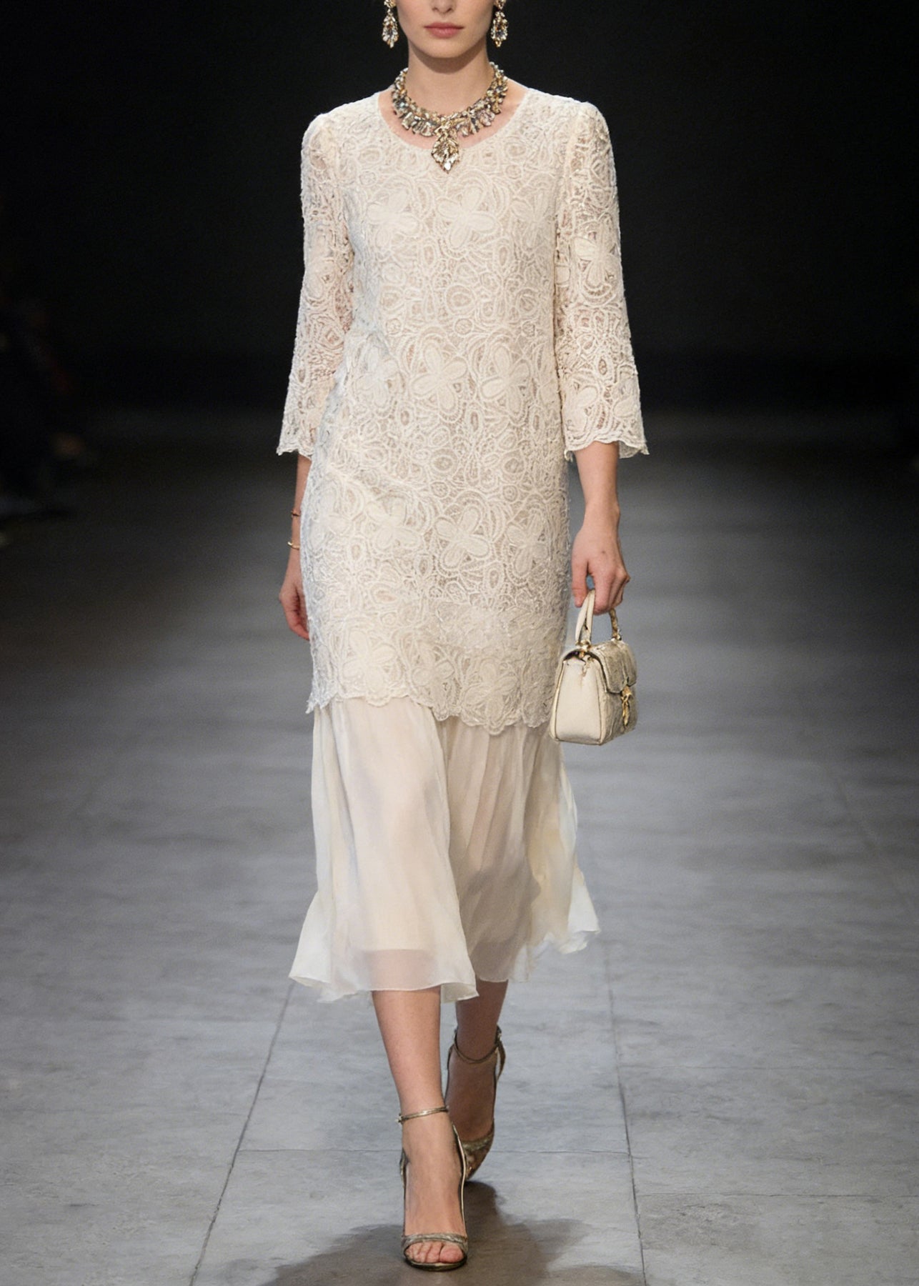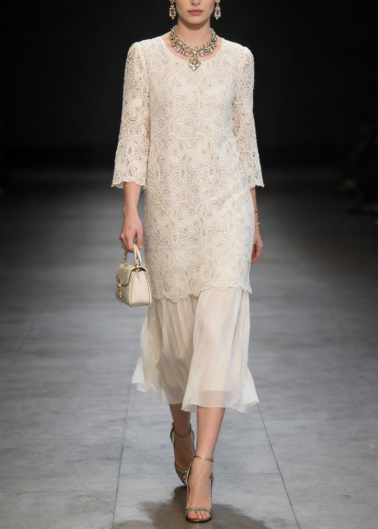 French Beige O Neck Patchwork Lace Dresses Summer