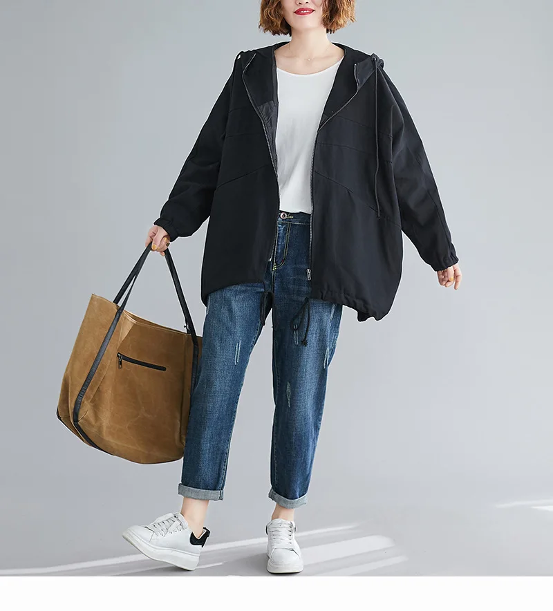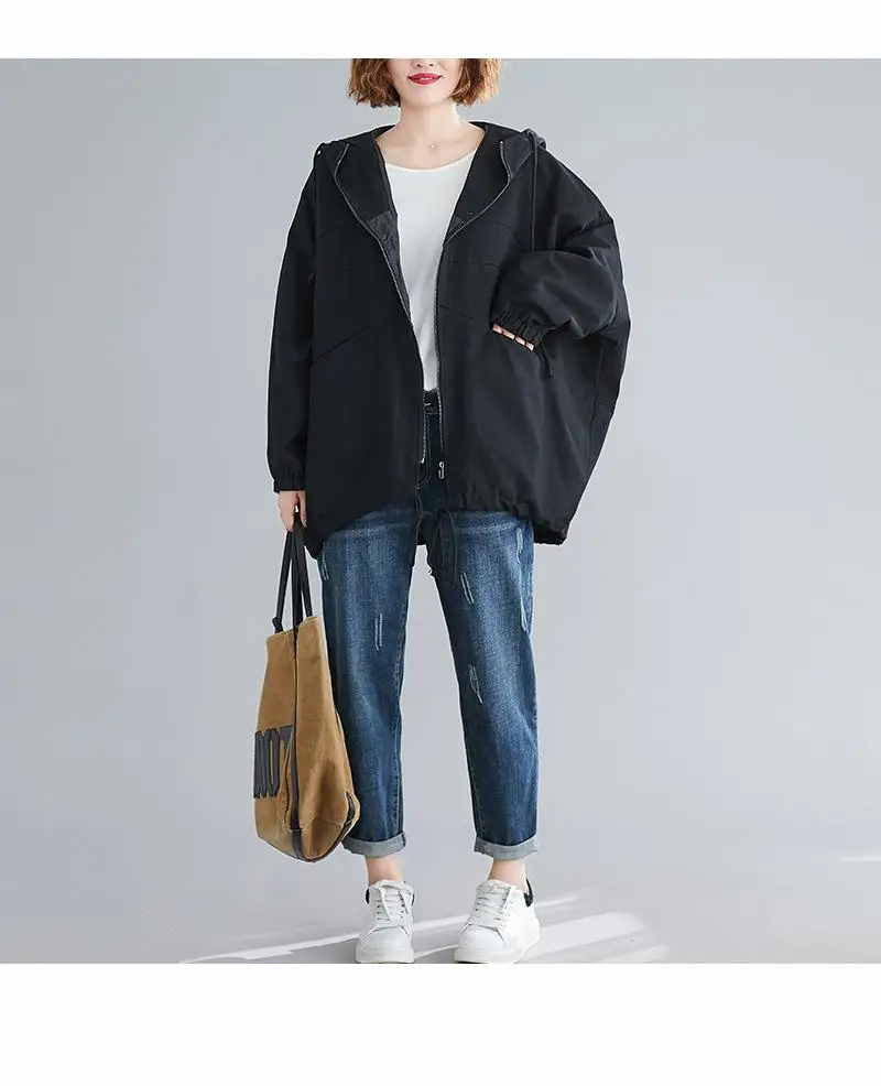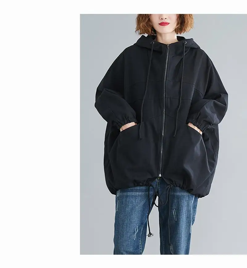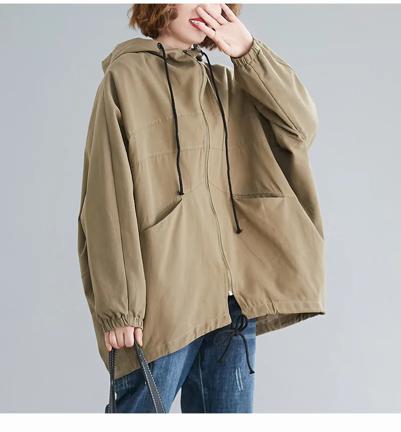 Pockets Zipper All-match Hooded Windbreaker 2020 New Simple Leisure Plus Size Women Coat