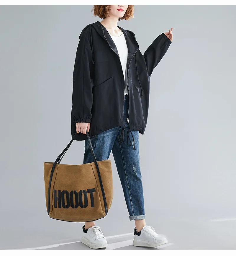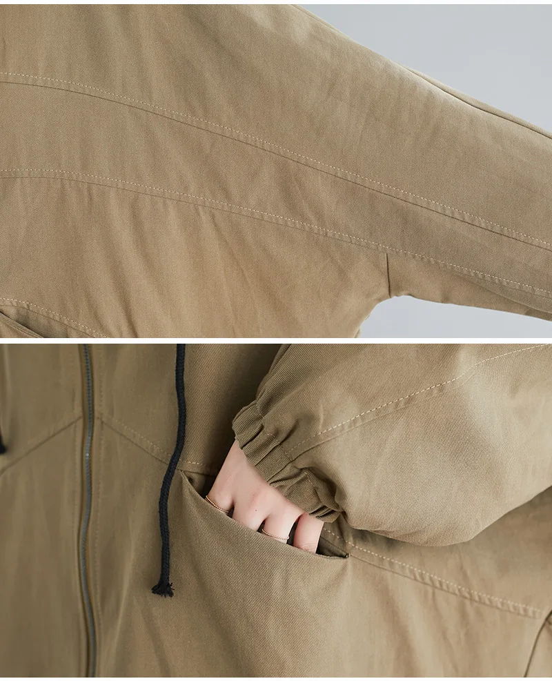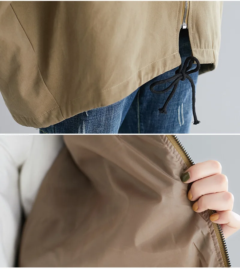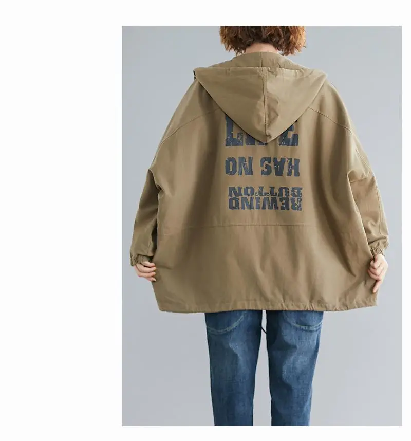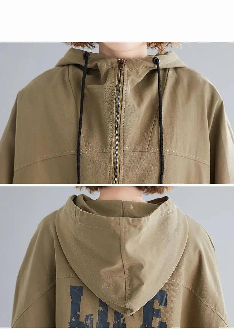 Pockets Zipper All-match Hooded Windbreaker 2020 New Simple Leisure Plus Size Women Coat