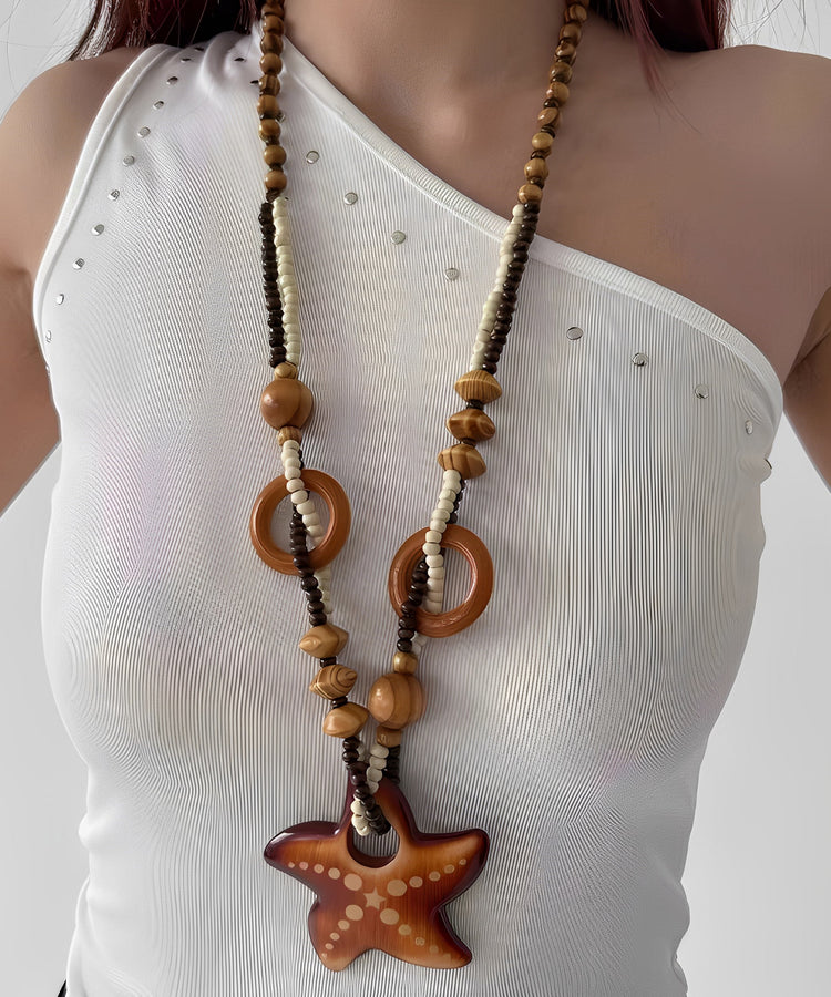Bohemian Brown Woodiness Starfish Beads Pendant Necklace