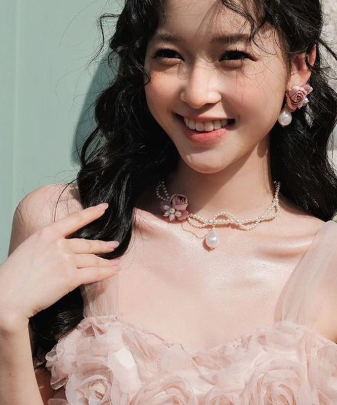 Stylish Red Lace Rose Necklace And Chain Bracelet Tassel Two-Piece Set Princess Necklace