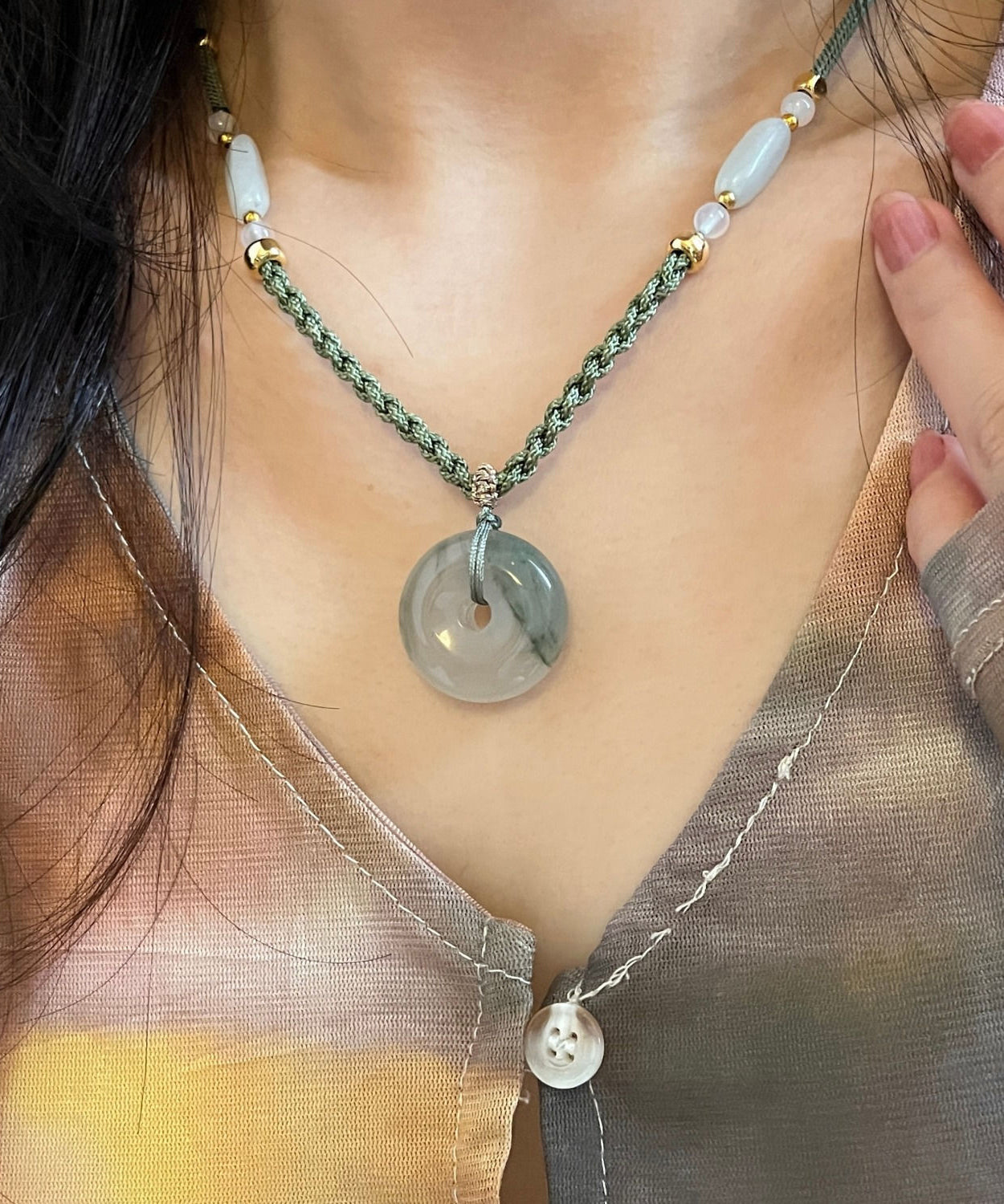 Handmade Green Braided Rope Ping Buckle Pendant Necklace