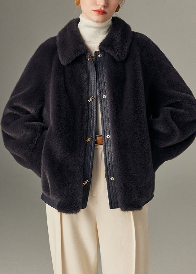 Loose Purple Button Faux Leather Patchwork Mink Hair Coats Winter