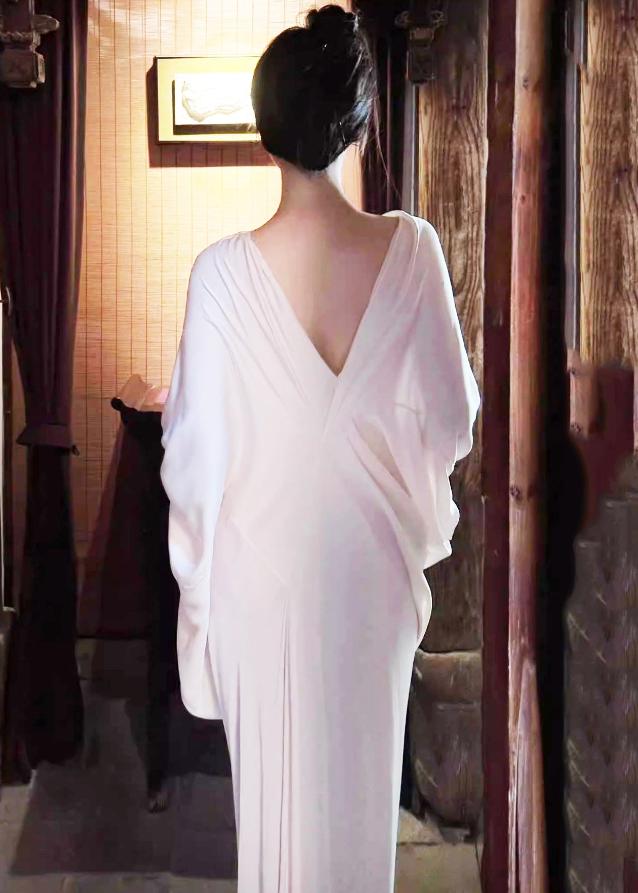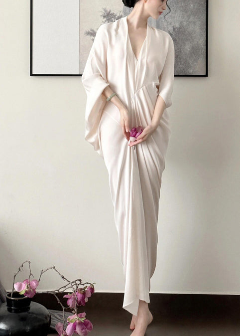 Casual Apricot Backless Ice Silk Wraped Dress Summer