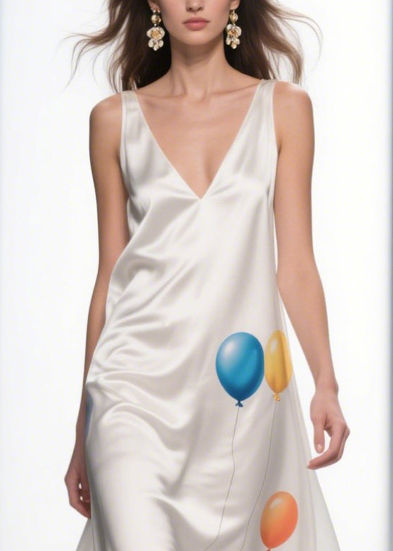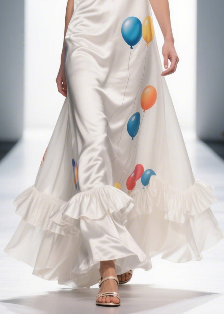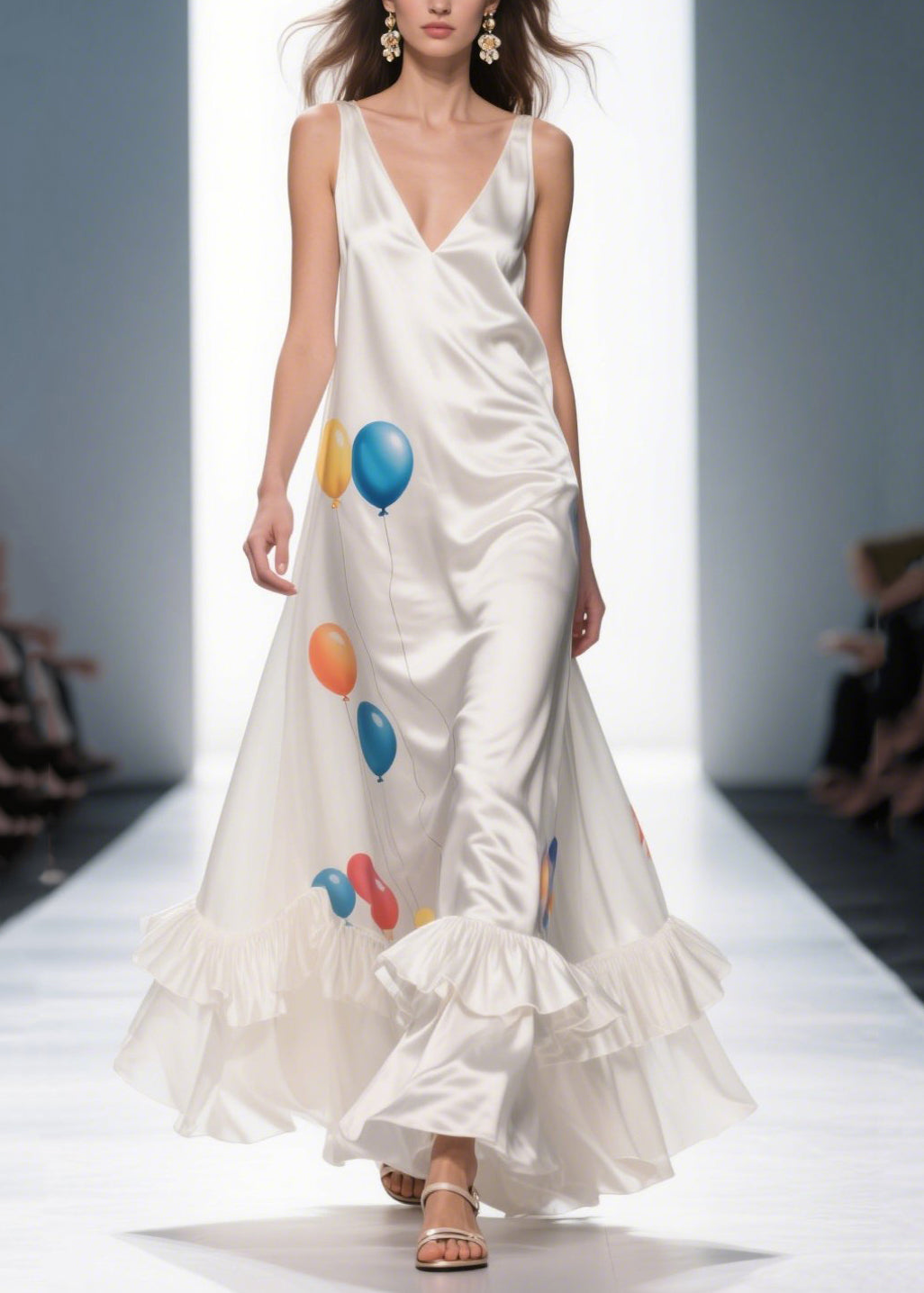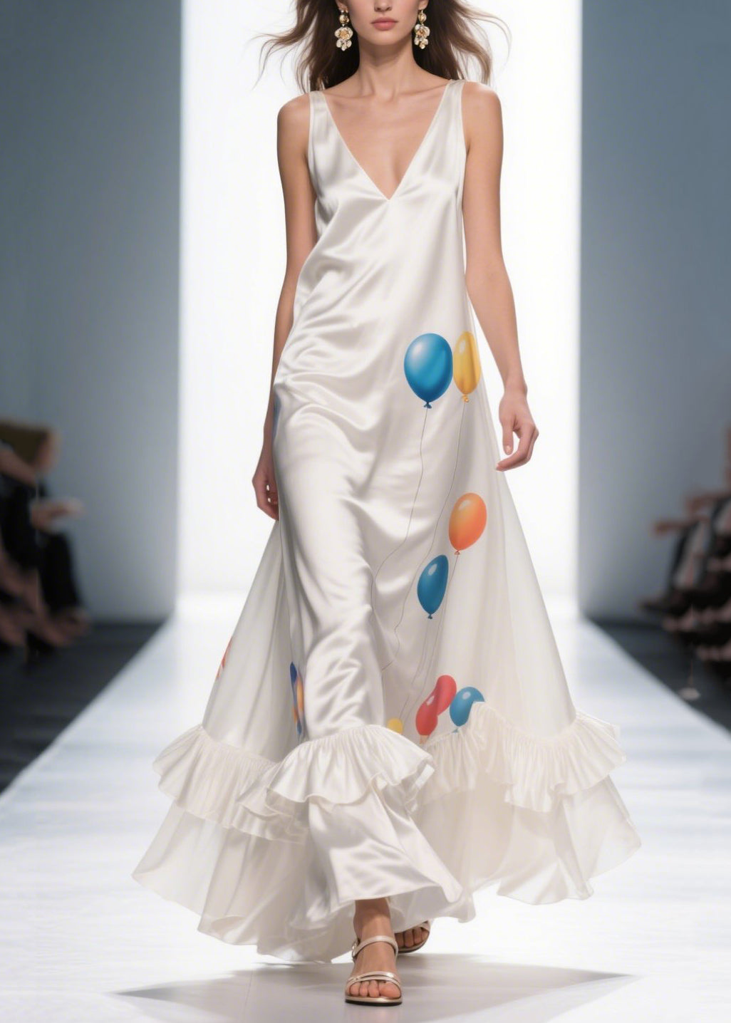 Bohemian Milk White Ruffled Print Silk Vestidos Dress Summer