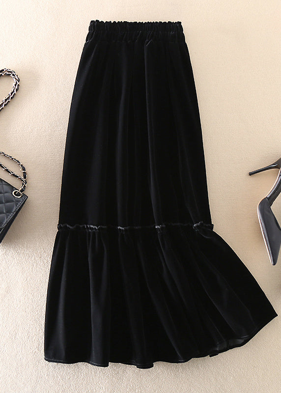 Boho Black Patchwork Silk Velour Skirt Spring
