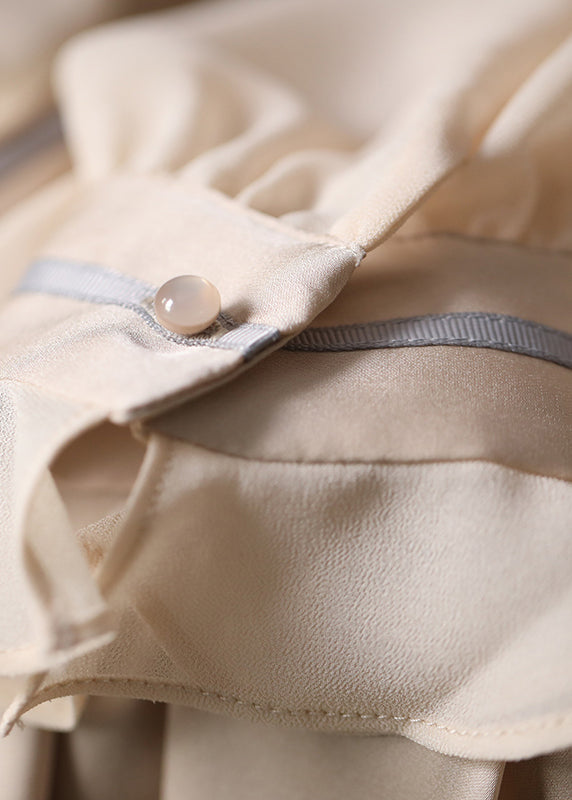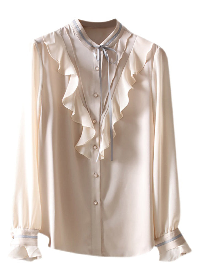 Boutique Apricot Ruffled Button Silk Shirts Spring