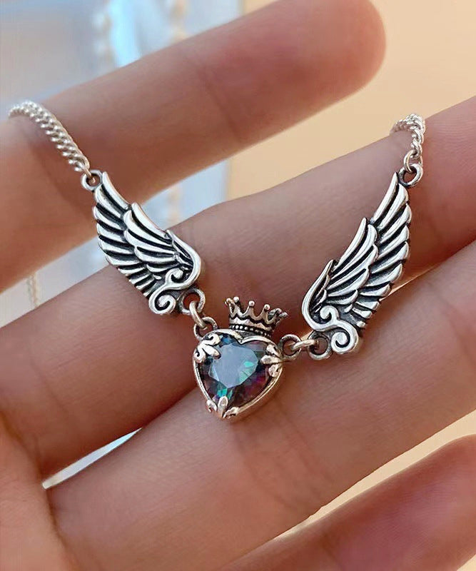 Boutique Silk Sterling Silver Crystal Love Crown Wings Pendant Necklace