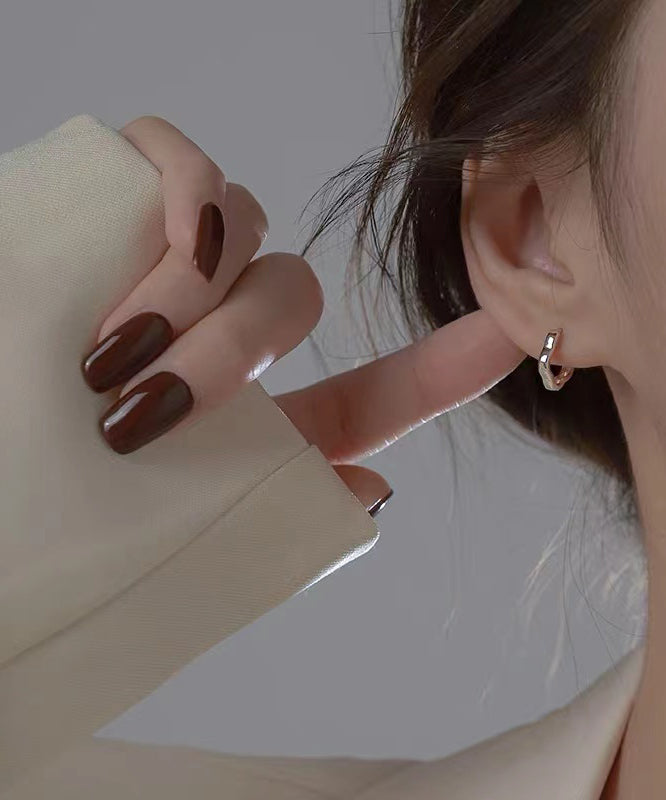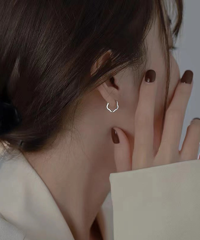 Boutique Silk Sterling Silver Geometric Flower Hoop Earrings