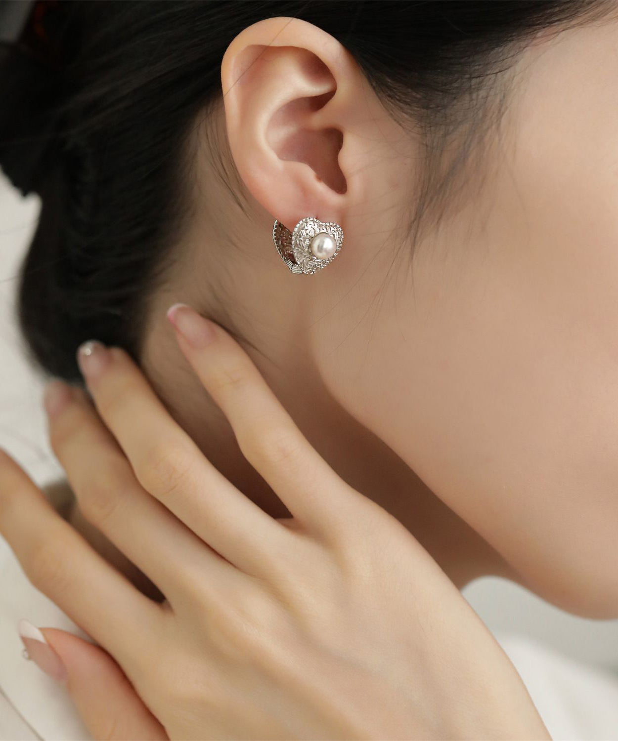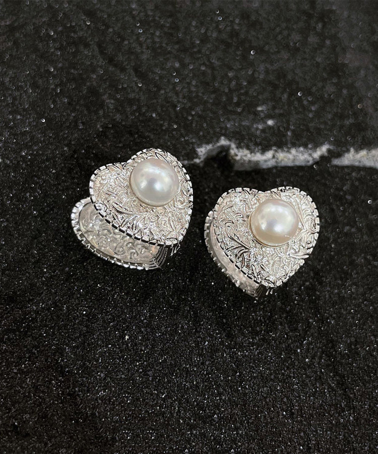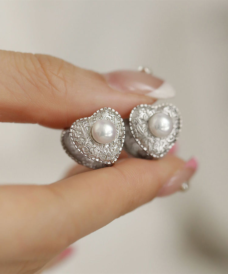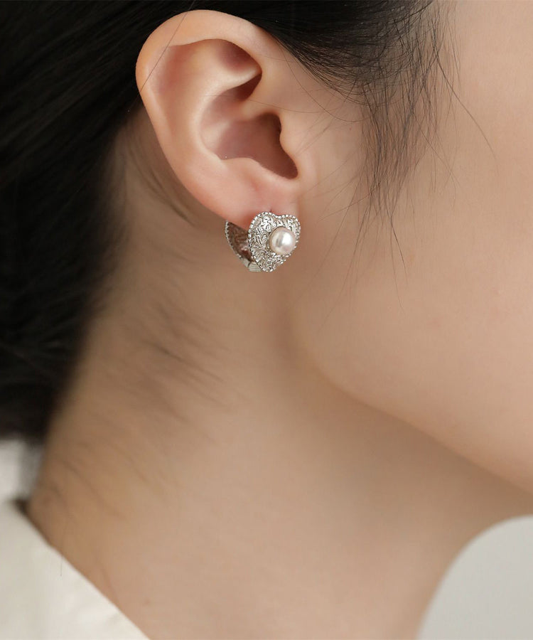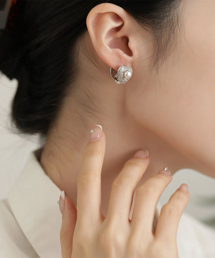 Boutique Silk Sterling Silver Overgild Love Pearl Stud Earrings