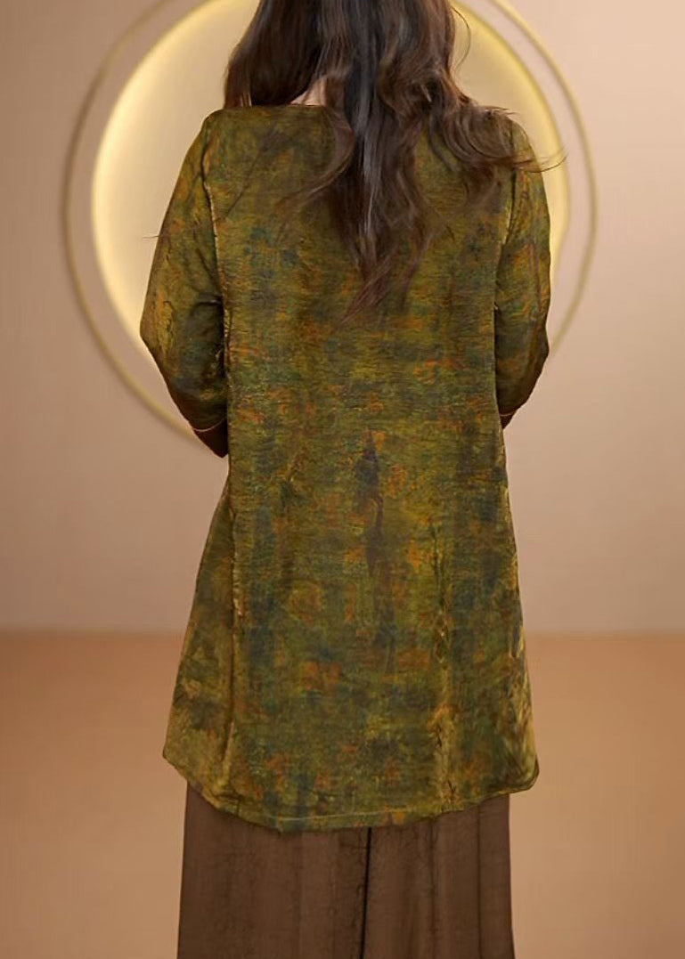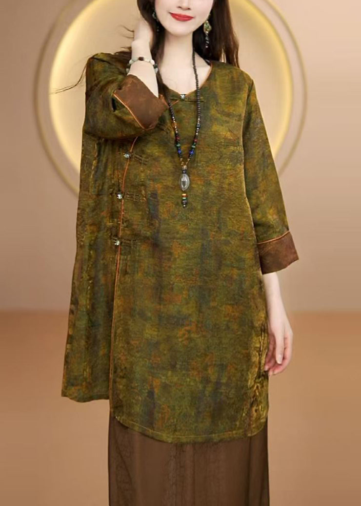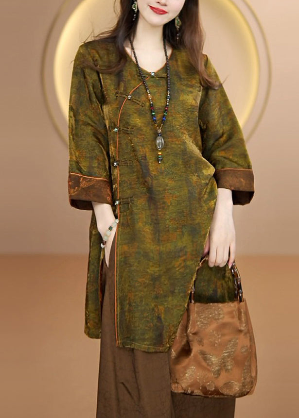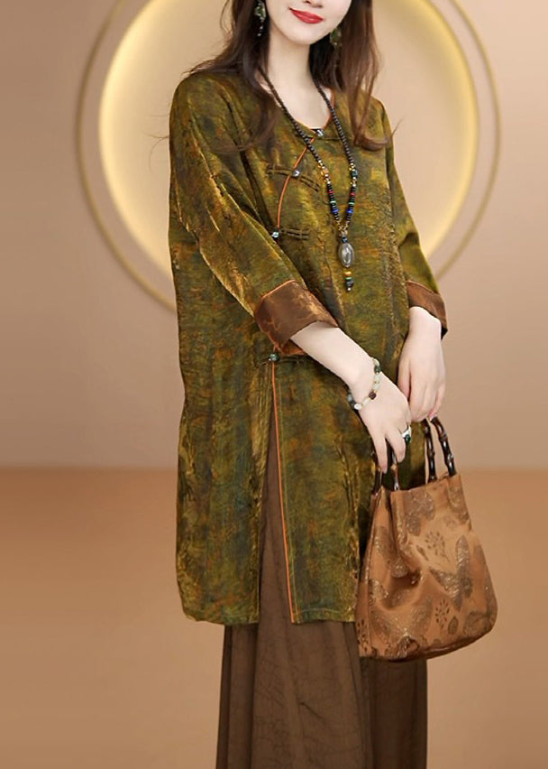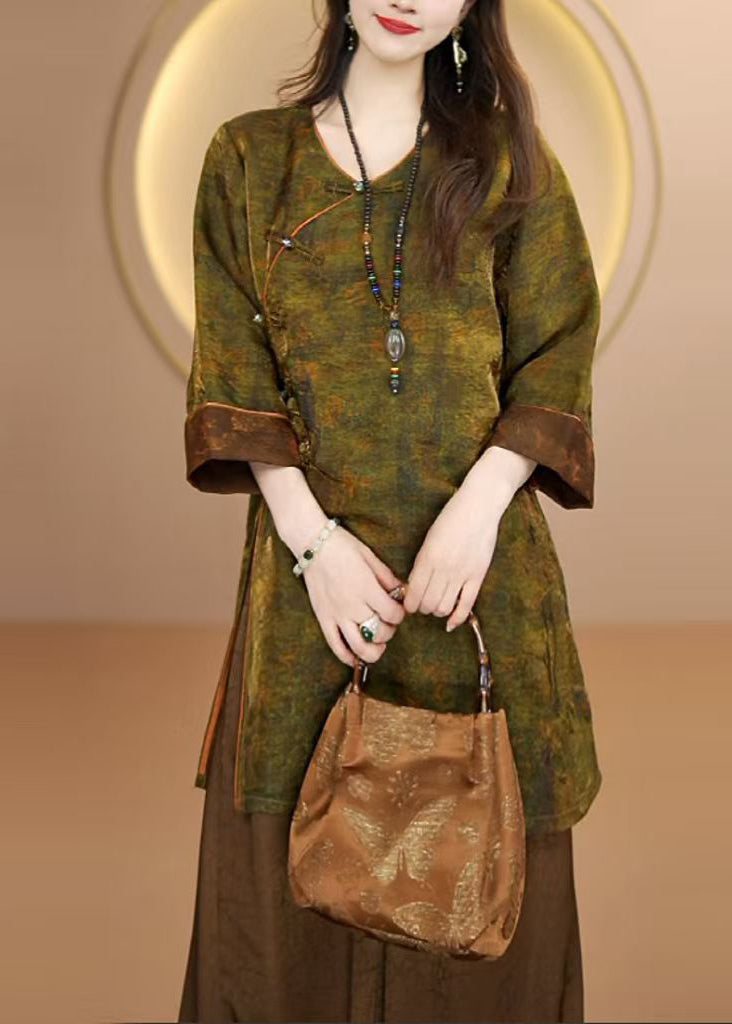 Chinese Style Oriental Button Side Open Silk Shirt Fall