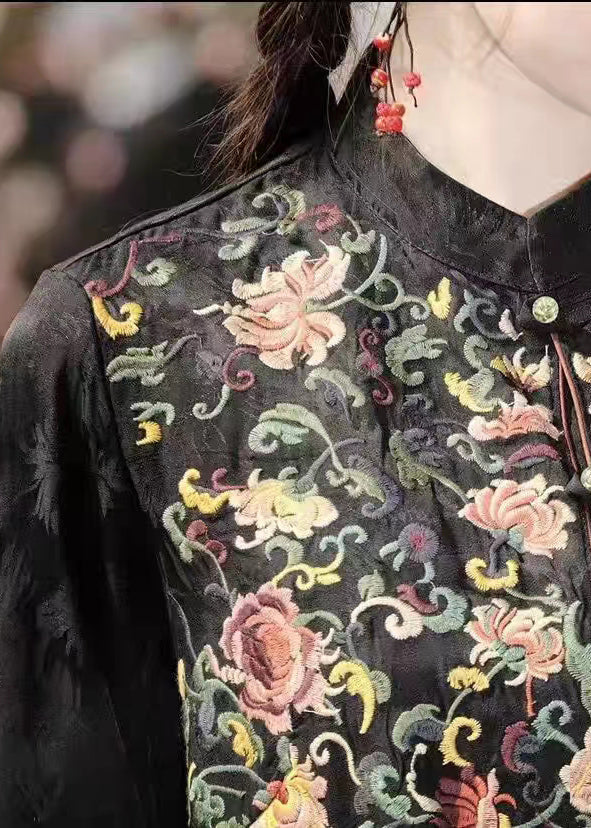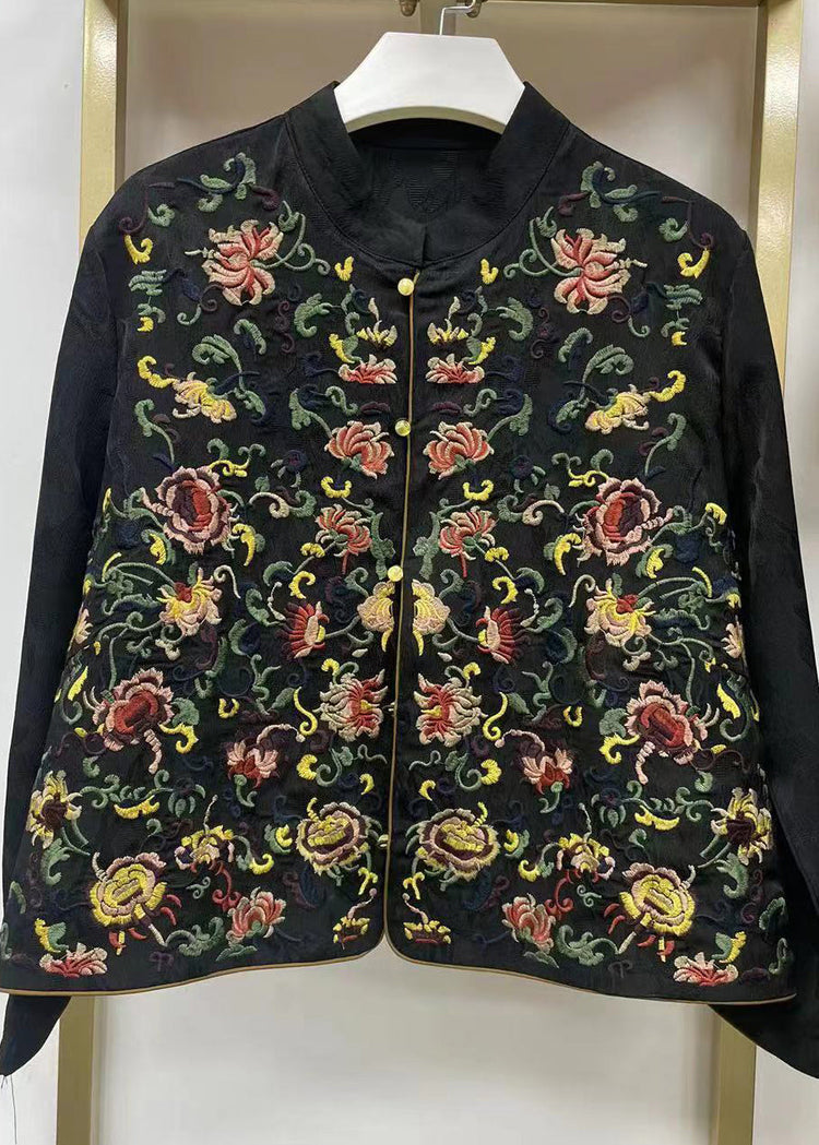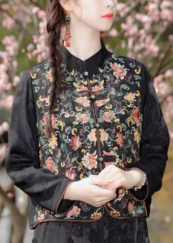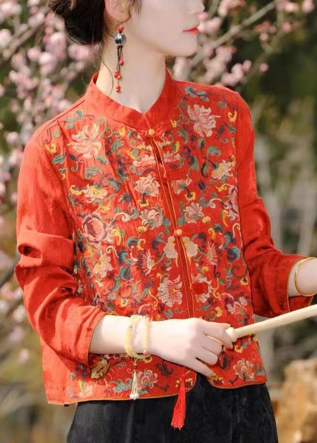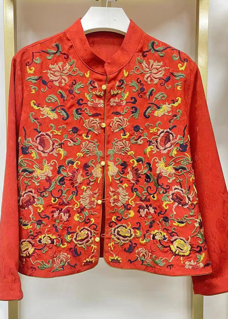 Chinese Style Red Stand Collar Embroideried Patchwork Silk Coat Fall