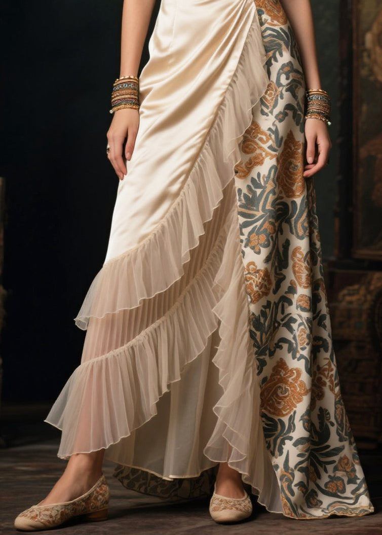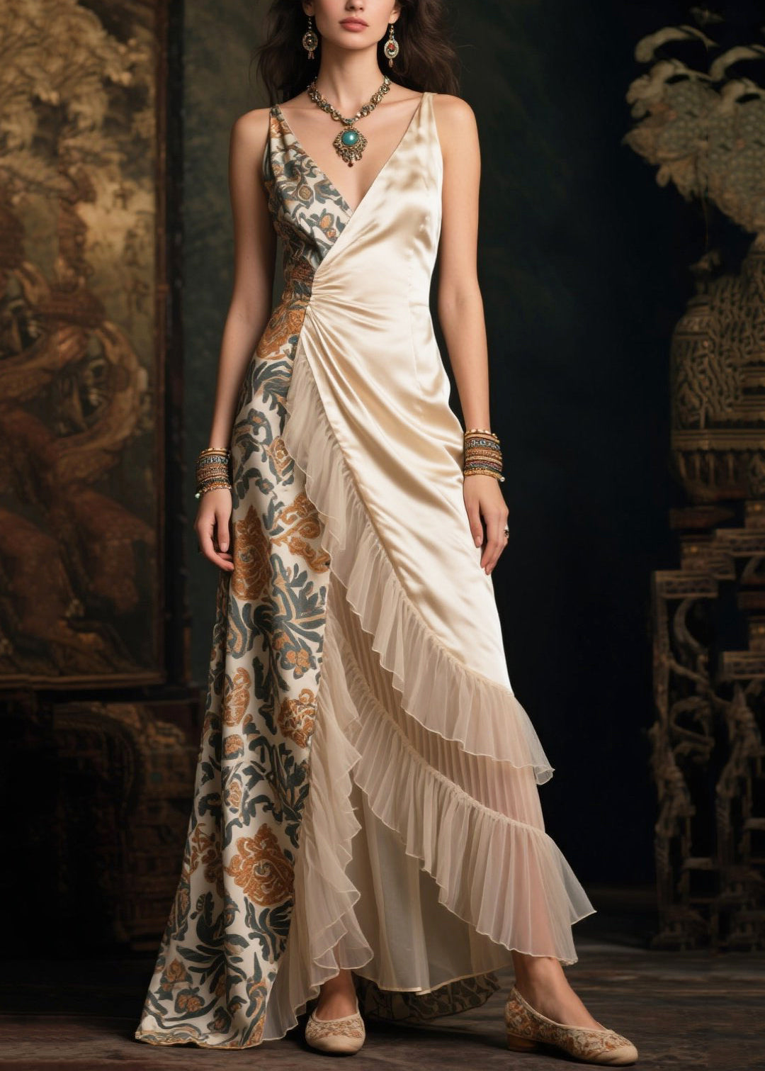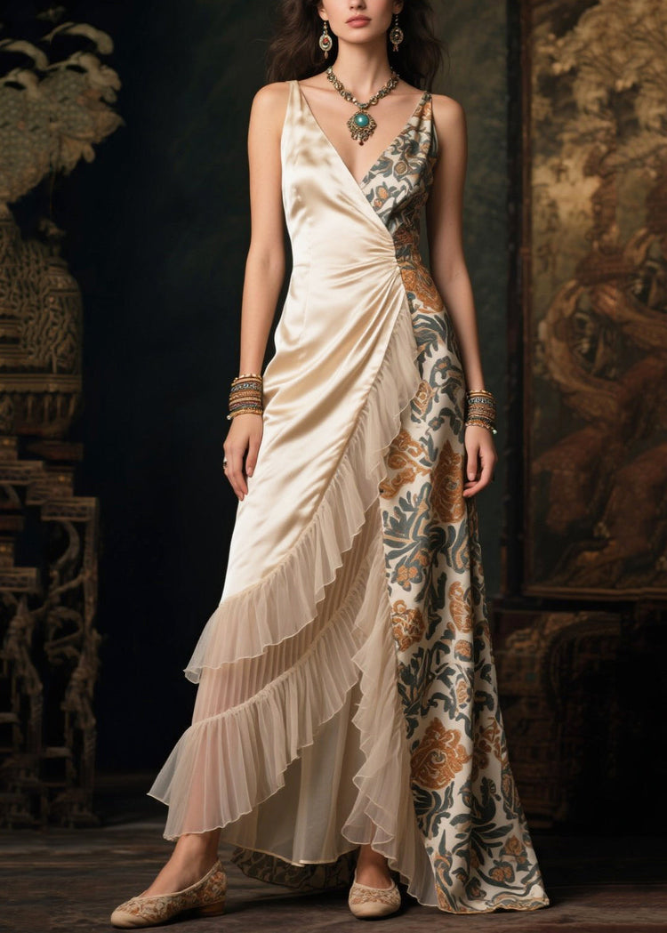 Classy Asymmetrical Patchwork Ruffles Silk Vestidos Dresses Summer