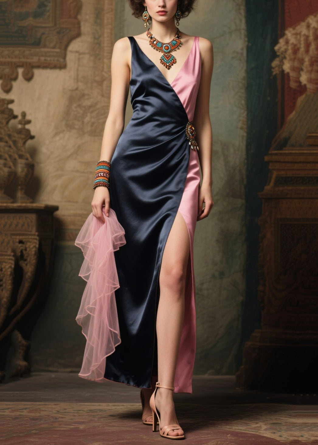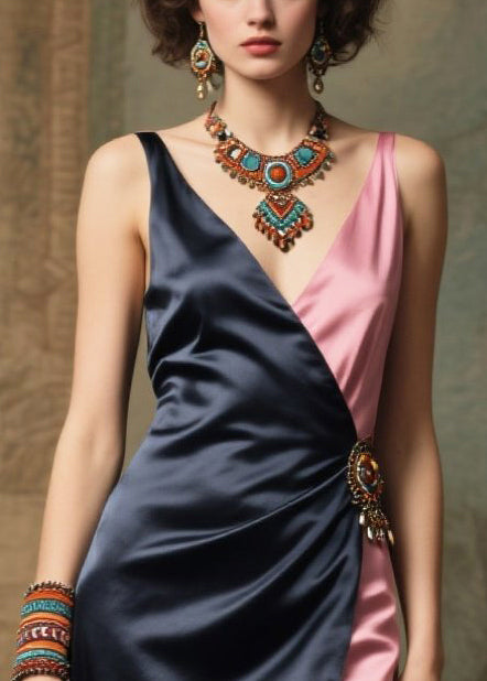 Classy Black Asymmetrical Patchwork Silk Cami Dresses Summer
