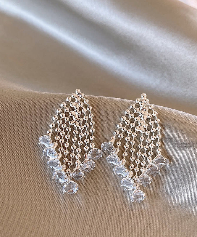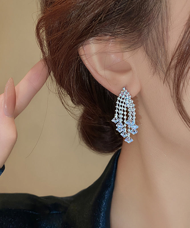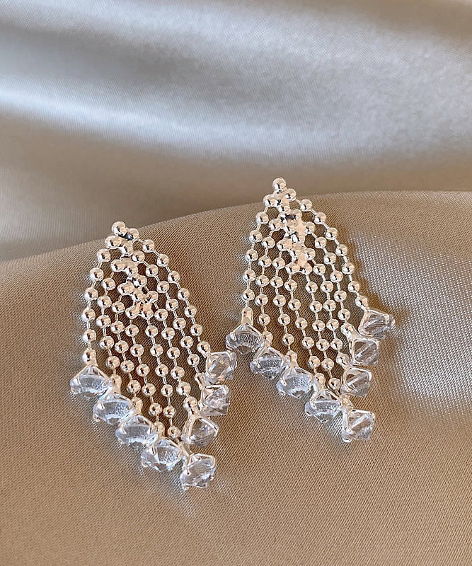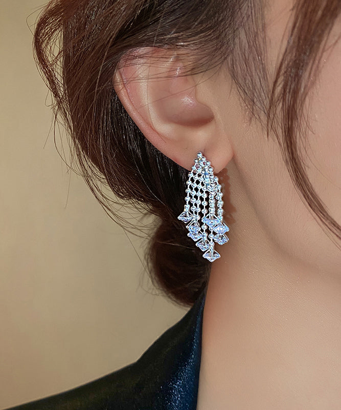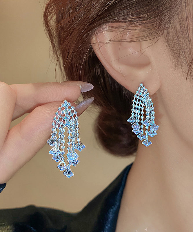 Classy Silk Alloy Crystal Fireworks Tassel Drop Earrings