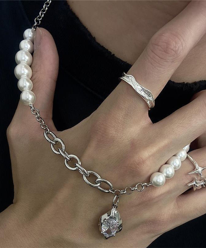 Classy Silk Stainless Steel Pearl Water Drop Zircon Pendant Necklace