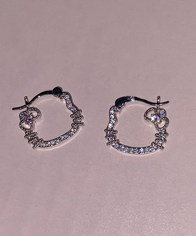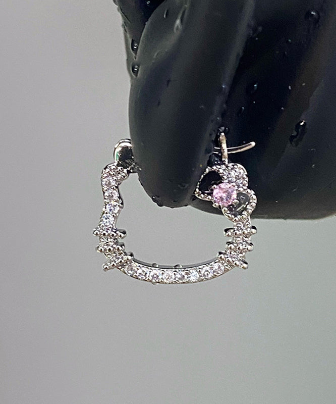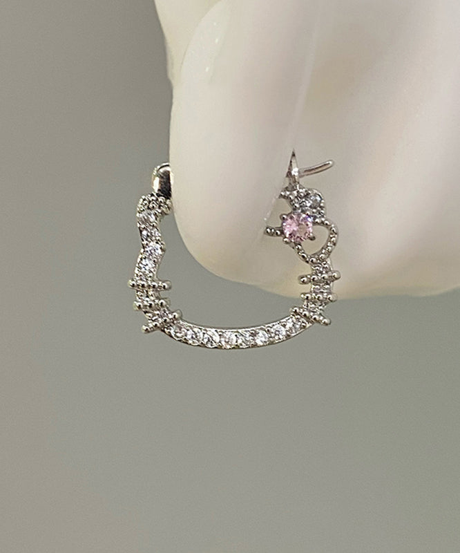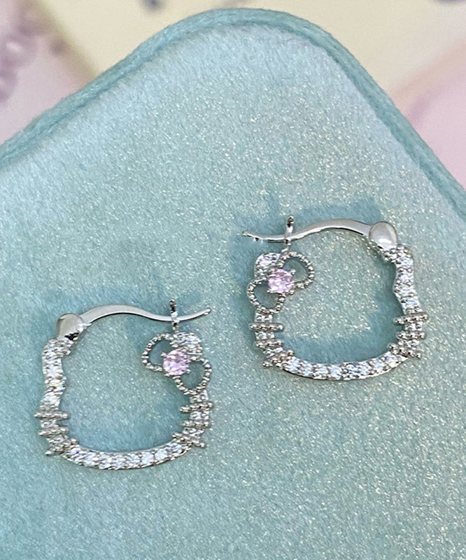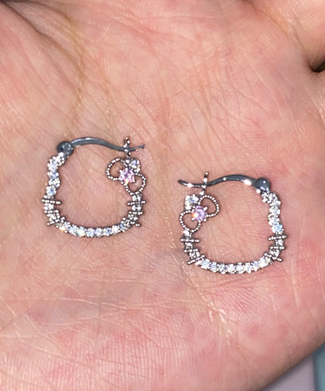 DIY Silk Copper Zircon Gem Stone KT Cat Hoop Earrings