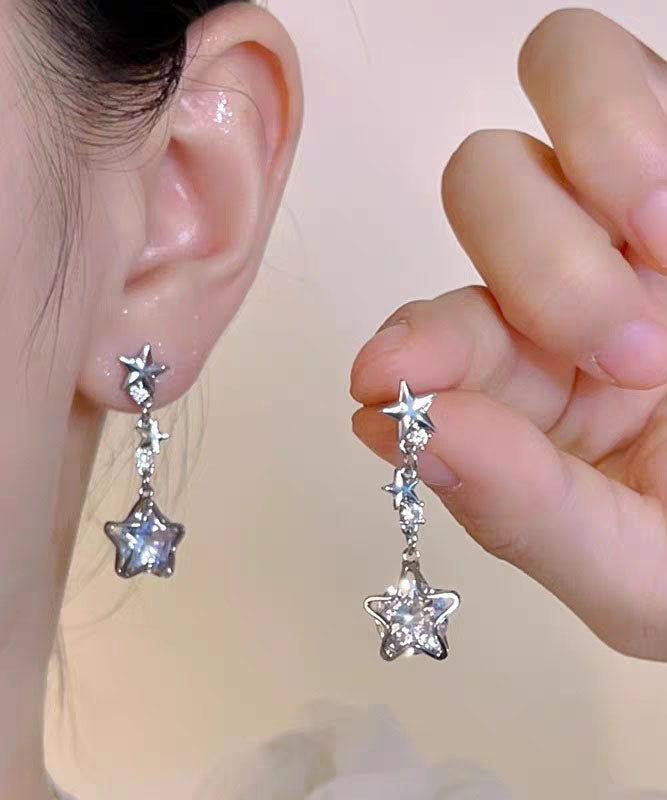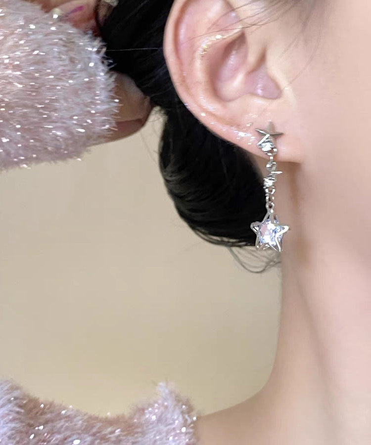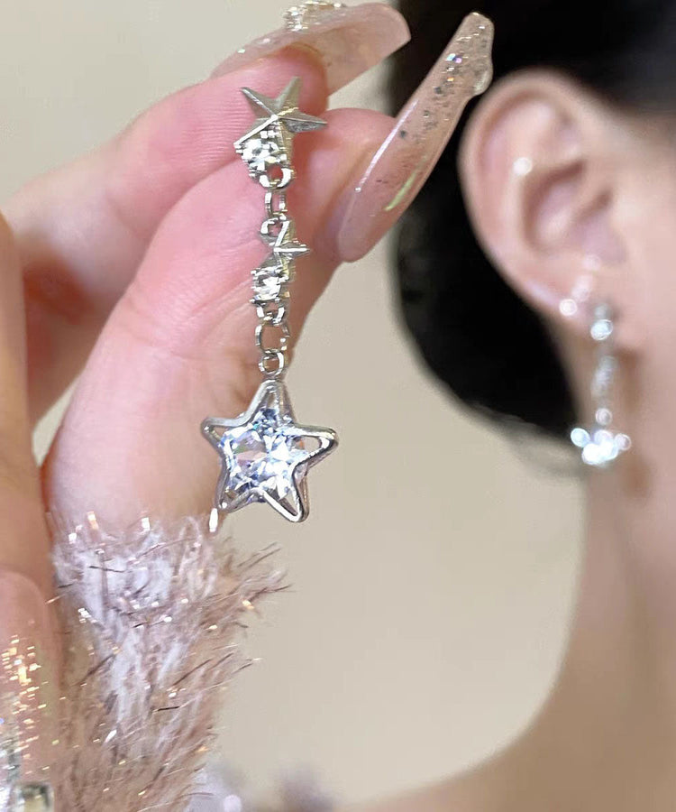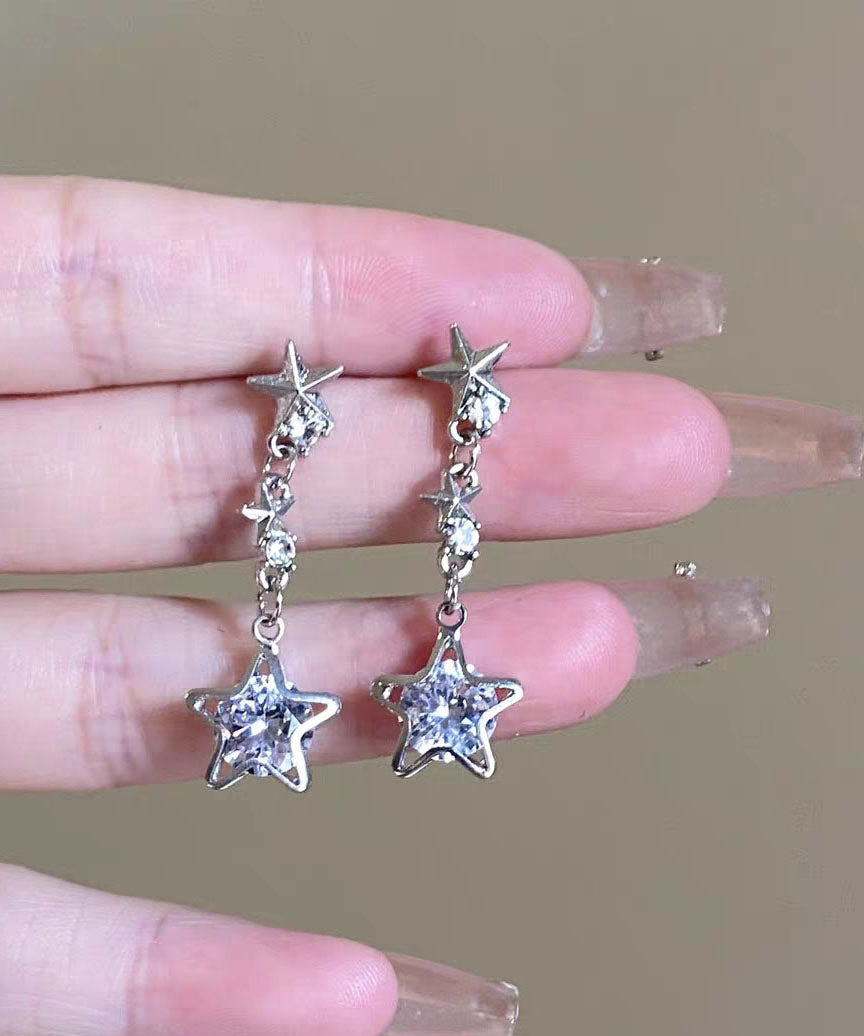 DIY Silk Stainless Steel Zircon Star Drop Earrings