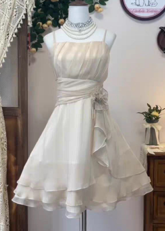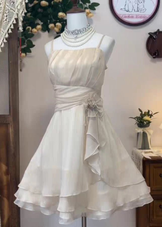 Elegant Pink Wrinkled High Waist Silk Spaghetti Strap Dress Sleeveless