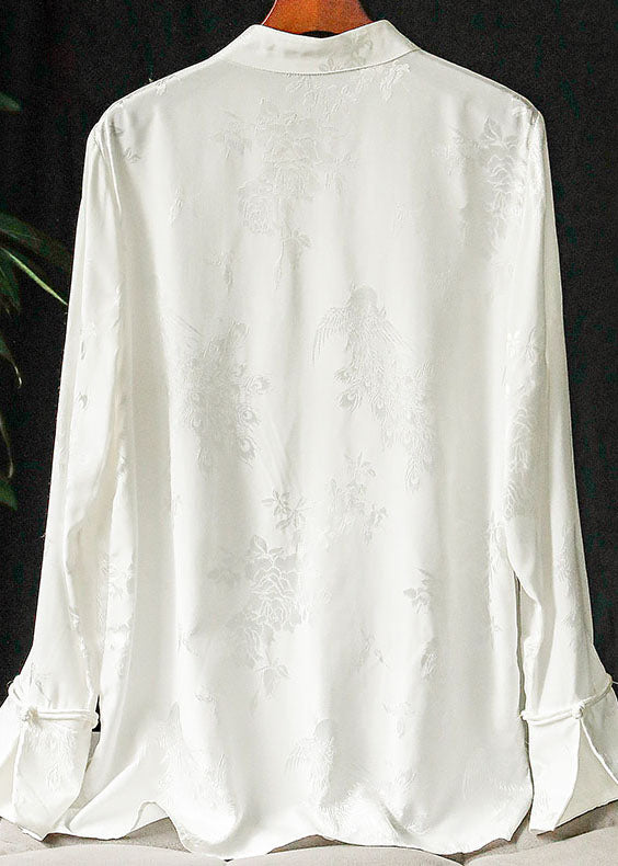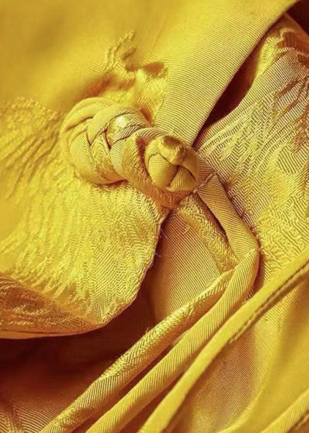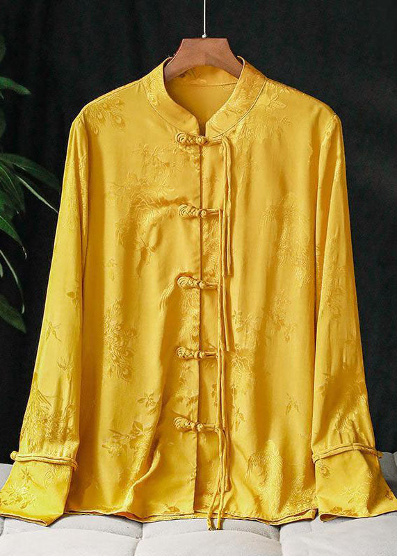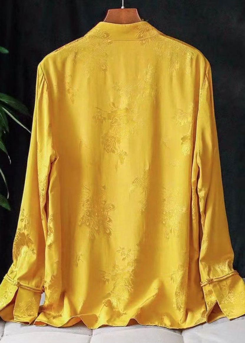 Fashion Yellow Mandarin Collar Jacquard Tassel Silk Shirt Top Long Sleeve