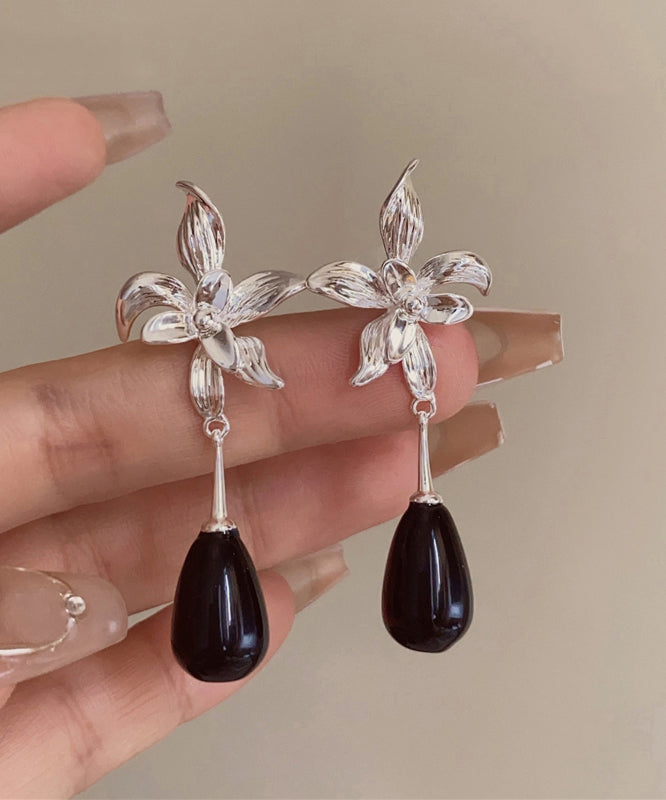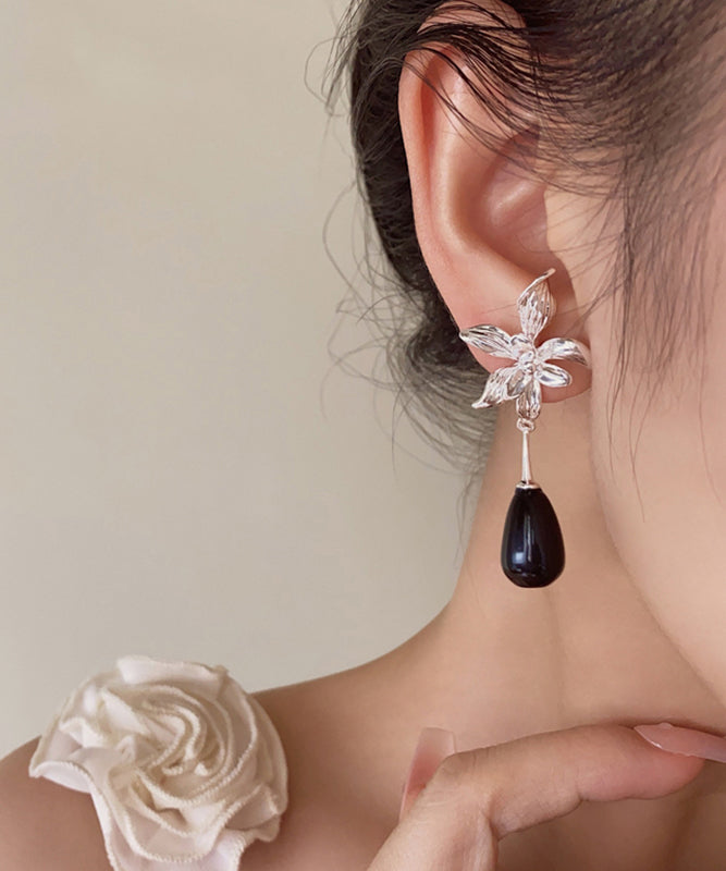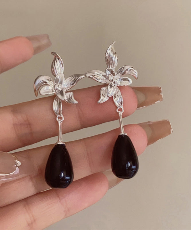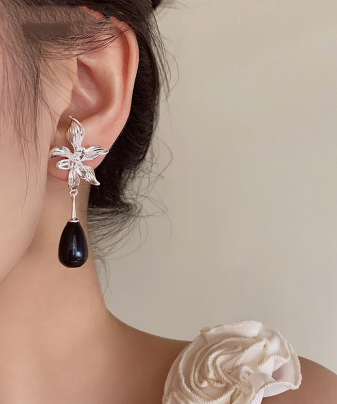 Fine Silk Alloy Resin Floral Water Drop Drop Earrings